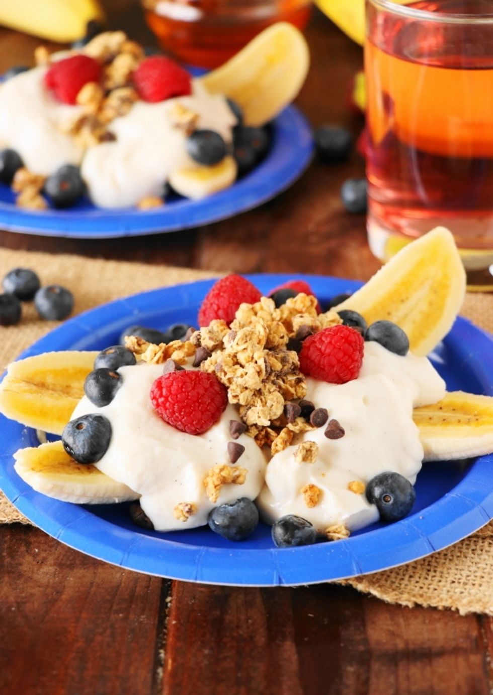 Loaded with vanilla Greek yogurt, fresh berries, crunchy granola, and sprinkling of mini chocolate chips, these tasty Breakfast Banana Splits will certainly get your day off to a great start. Or, enjoy one for a totally tasty and satisfying dessert, too!