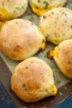 Rolls are filled with scrambled eggs, cheese, bacon and diced jalapeños.