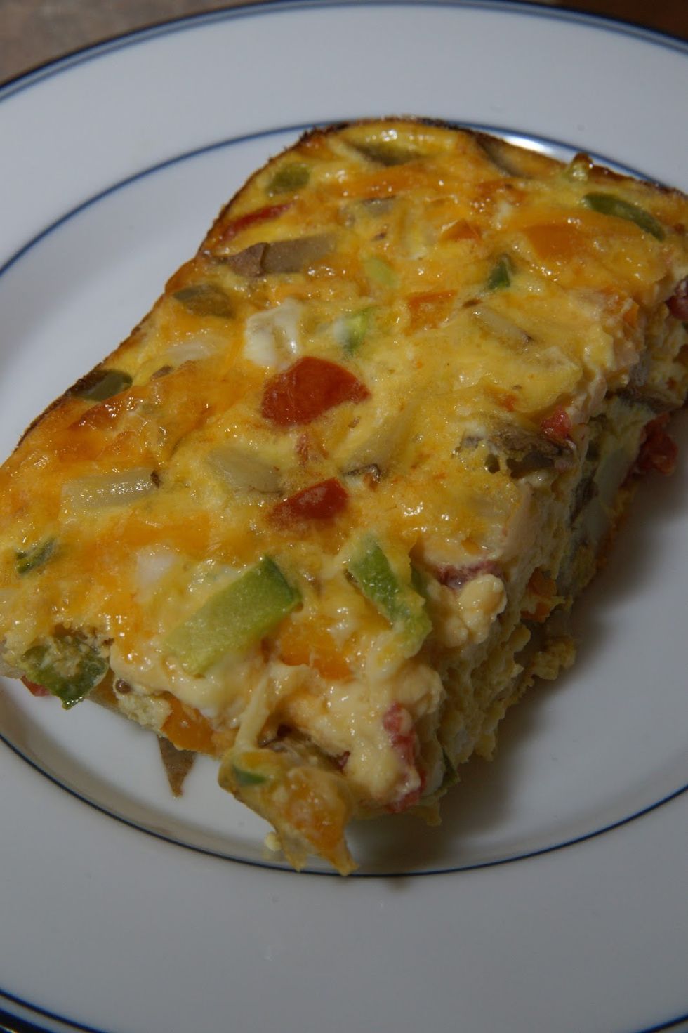 Breakfast casserole made healthier by adding vegetables and using fresh potatoes.