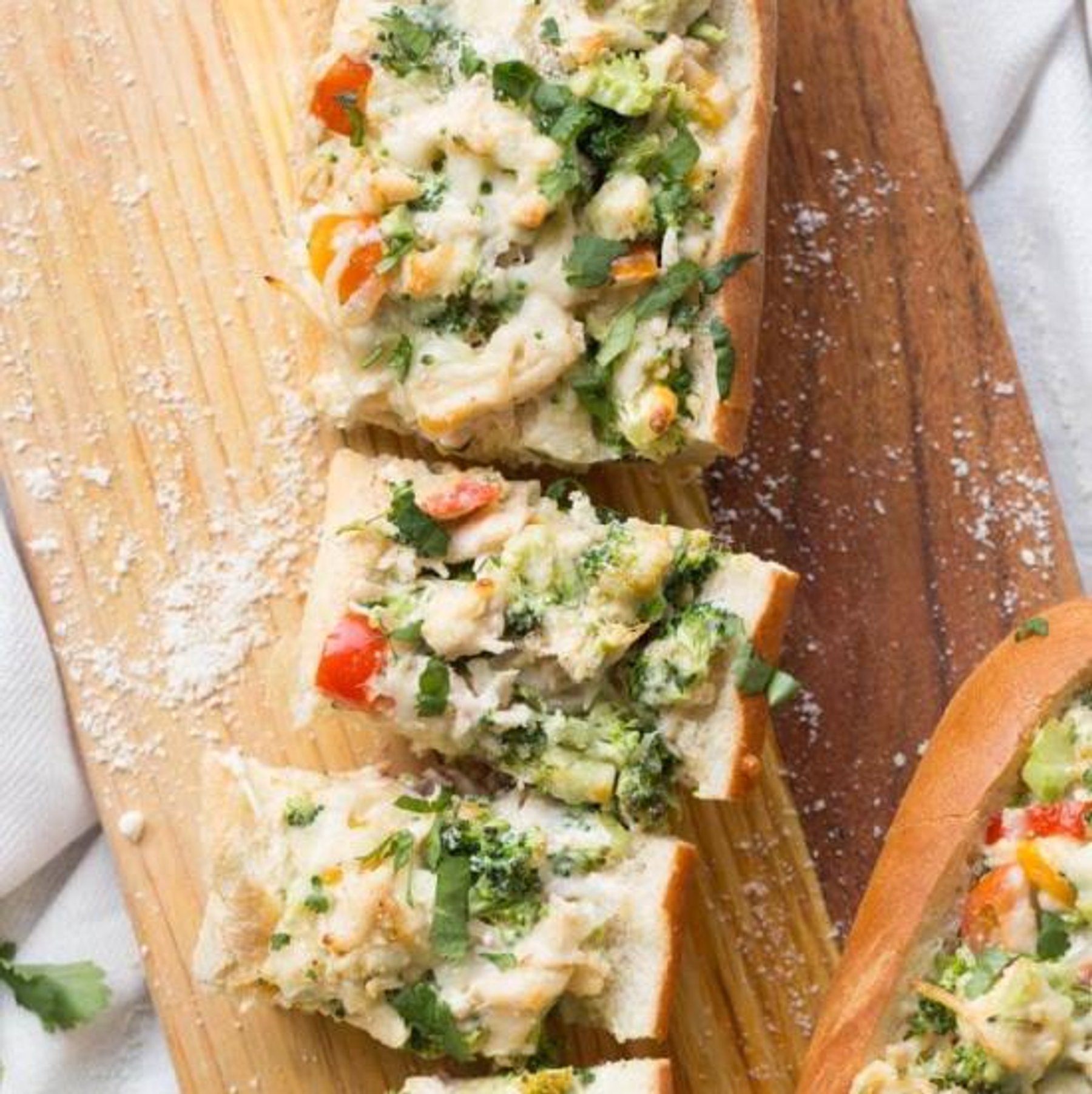 Broccoli and Chicken Bread Boats