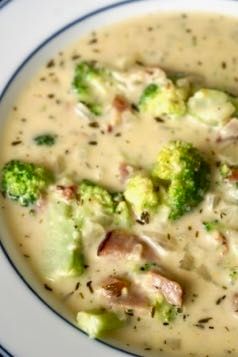 In a large stockpot, over medium heat, melt 1 tablespoon butter. Add in the cubed ham and cook, stirring occasionally, until lightly browned, about 3-4 minutes. Remove the ham and set aside.