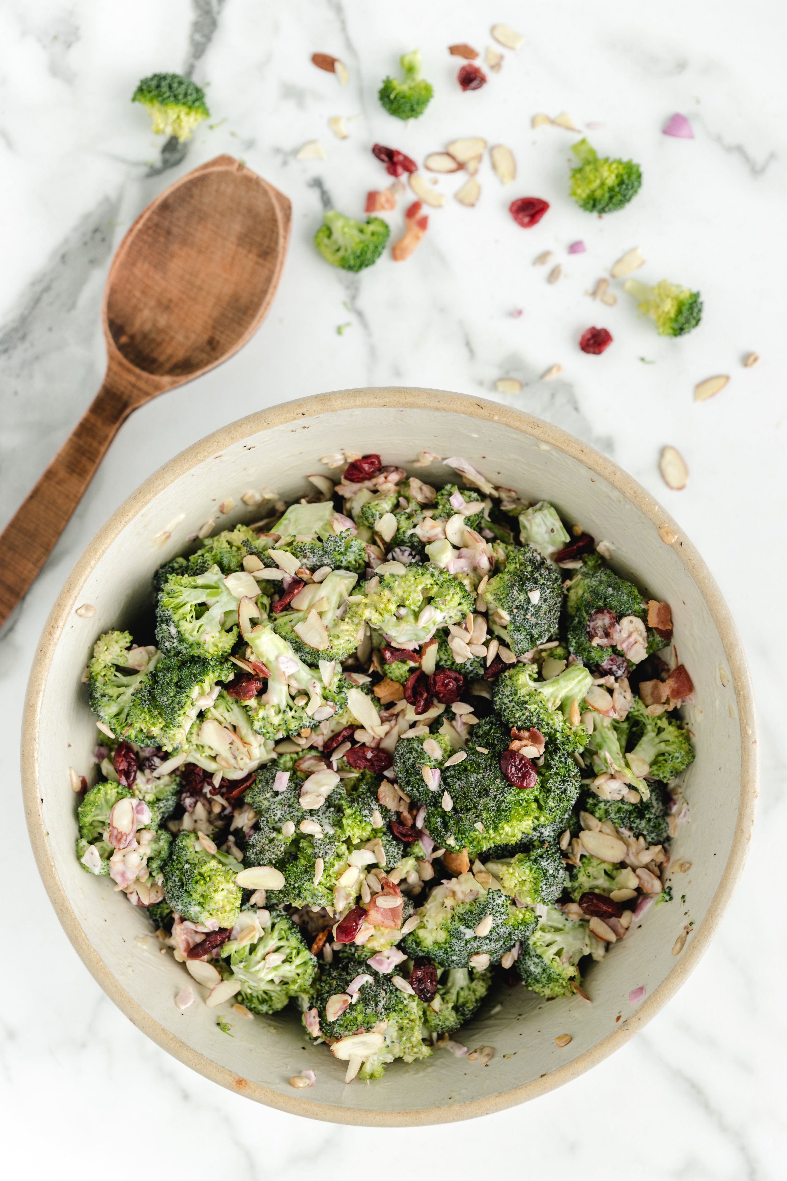 Broccoli Salad spaceshipsandlaserbeamsJune 25, 2020 204 This classic broccoli salad is an easy, healthy side dish that brightens up any table. It's loaded with cranberries, sunflower seeds, almonds, and bacon — a perfect mix of sweet and crunchy.8See the full directions hereSee the full directions on my site