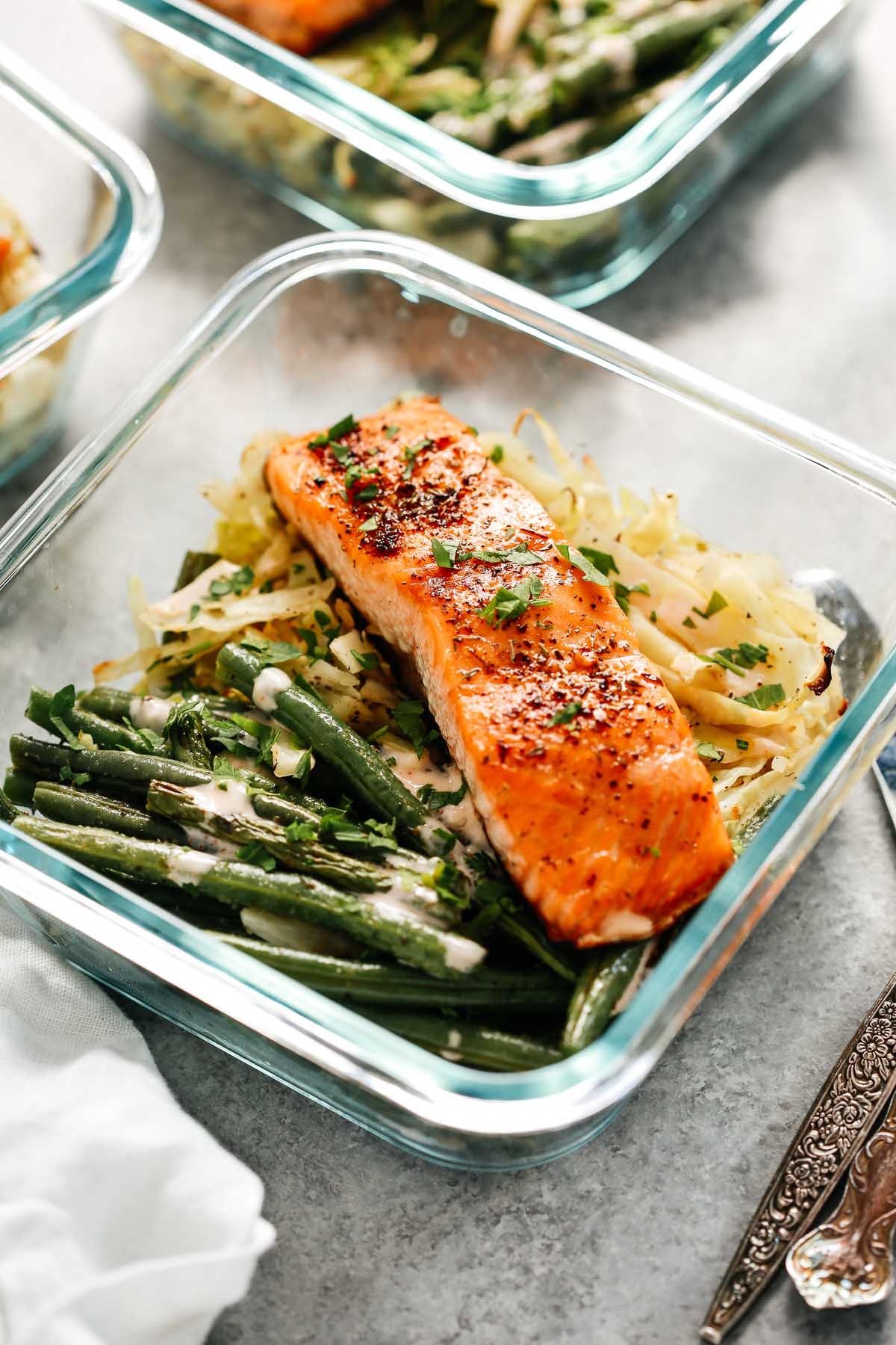 Broil Salmon with Cabbage Olivia RibasJune 09, 2020 80 https://www.primaverakitchen.com/broiled-salmon-with-cabbage-and-green-beans-meal-prep/Try itSee the full directions on my site
