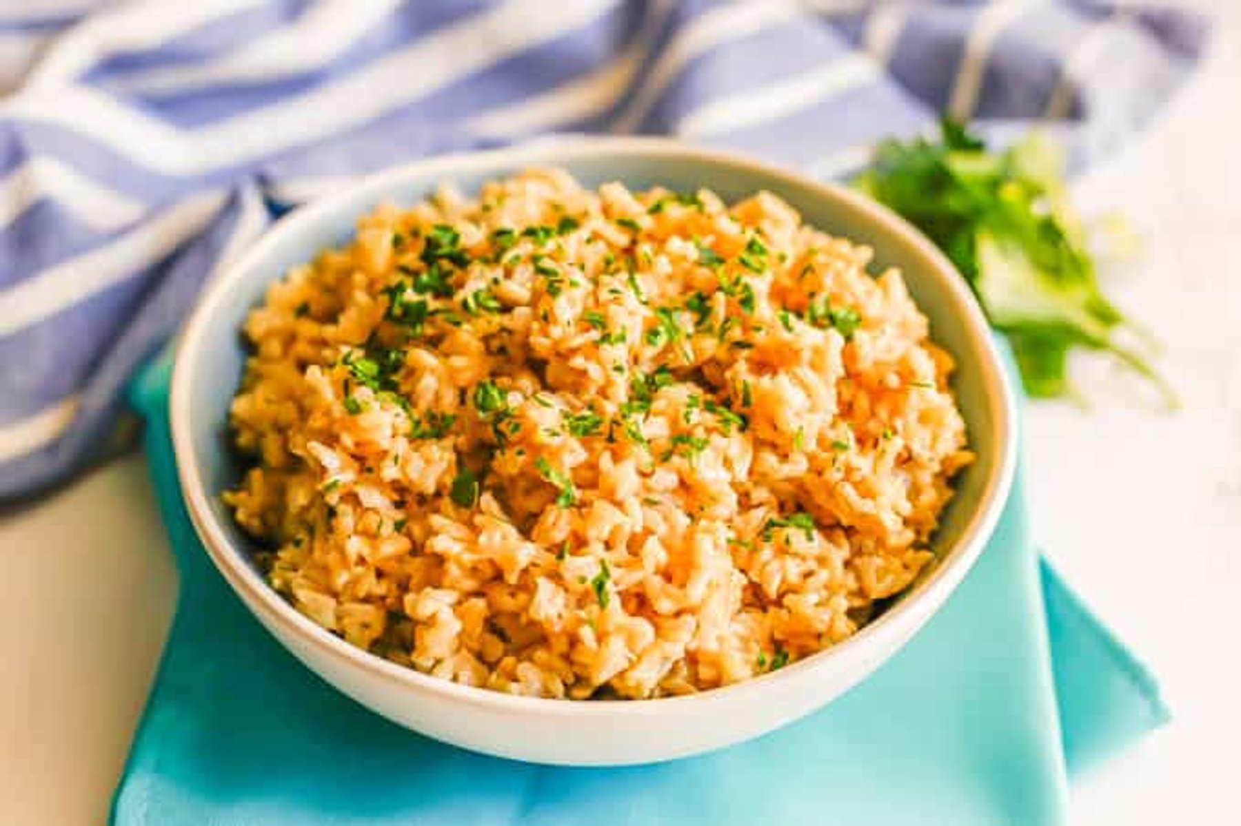 Brown rice pilaf is a simple dish with tender, perfectly cooked brown rice that gets extra flavor from cooking with the broth, butter and onions. It’s great for a spruced up side dish any night of the week.