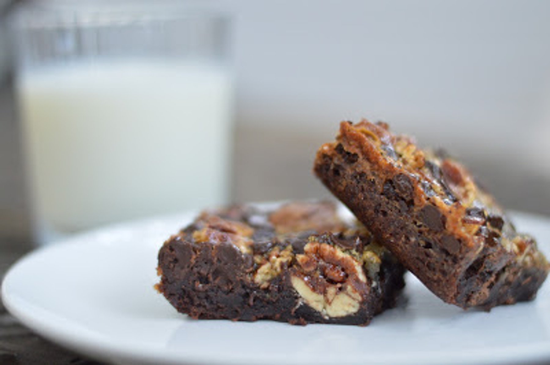 Preheat oven to 350 degrees and spray a 9 x 9-inch pan with non-stick cooking spray. Prepare brownie mix according to instruction and pour into greased pan. Bake for about 20 minutes (about 1/2 the time...