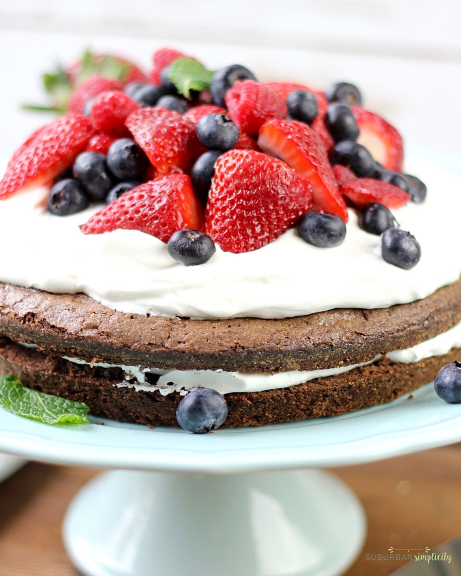 Layers of fudgy chocolate brownie with a creamy center, topped with berries make this Brownie Strawberry Shortcake a winning dessert combination!