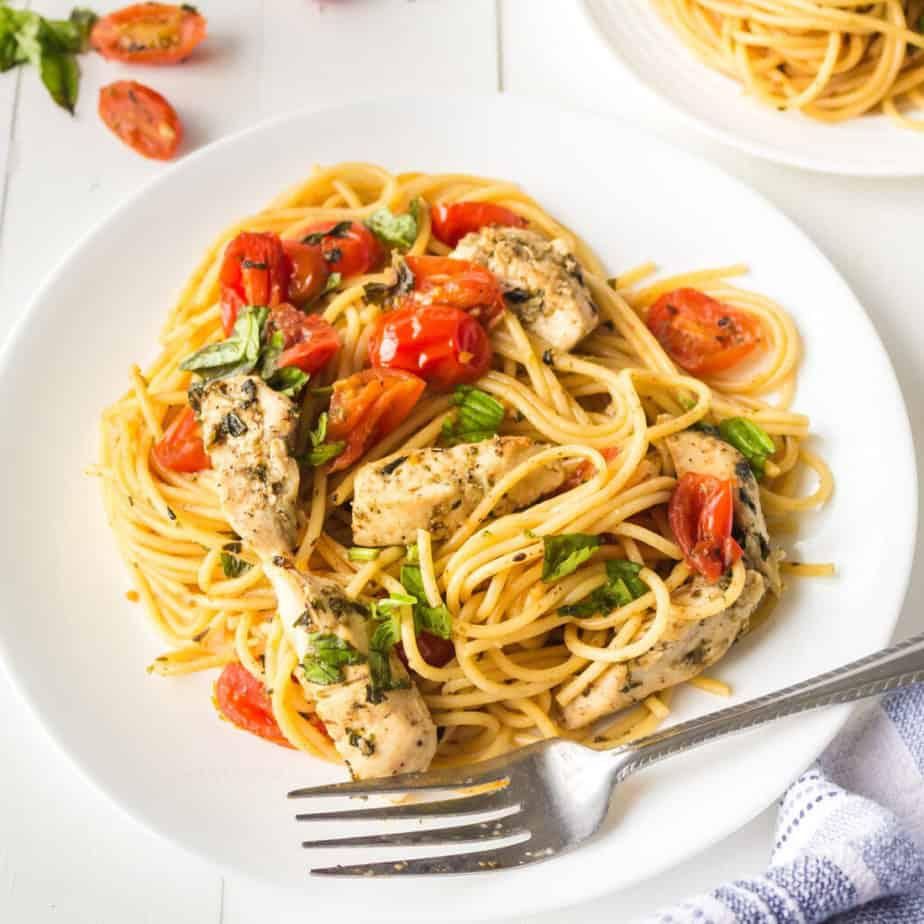 Bruschetta Chicken Pasta OnMyKidsPlateMarch 10, 2022 34 This bruschetta chicken pasta is a super easy weeknight dinner packed full of chicken, cherry tomatoes, and fresh flavor. You can serve this dish hot or as a cold bruschetta pasta salad.Find the full recipe on my site!See the full directions on my site