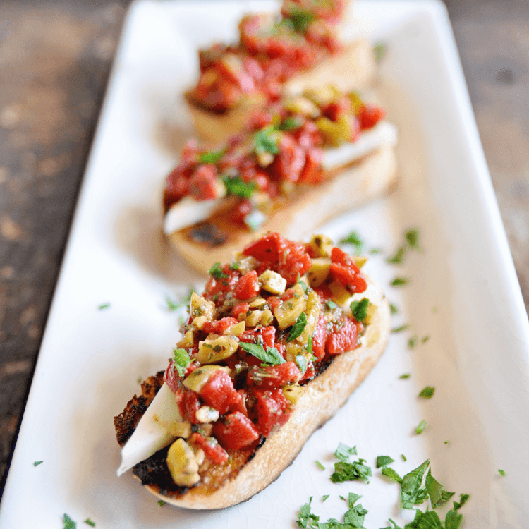 Bruschetta with Roasted Peppers and Spanish Olives
