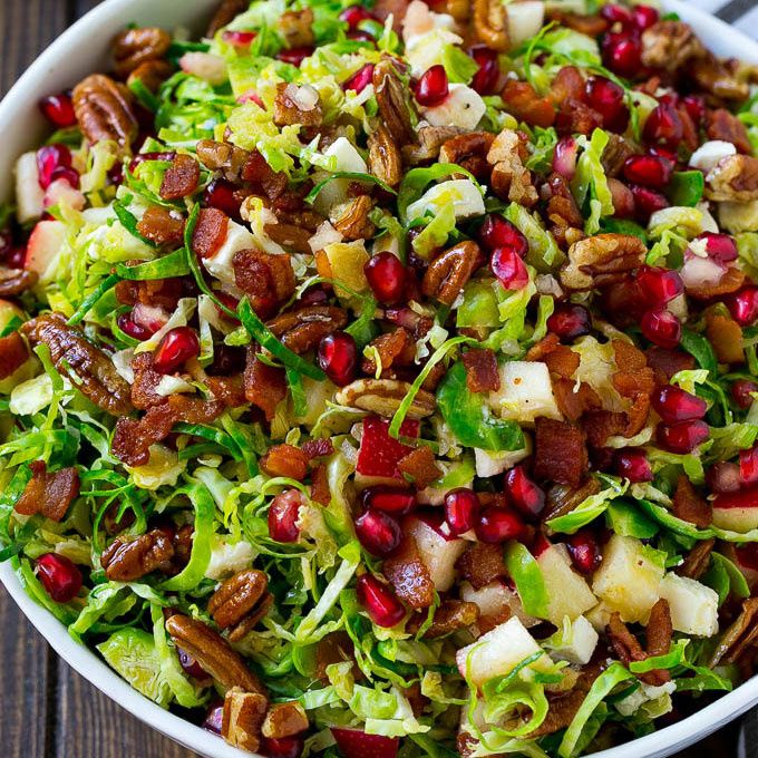 This Brussels sprout salad is made with shredded Brussels sprouts, apples, pomegranate, bacon, pecan and feta cheese, all tossed in a sweet and savory dressing. The ultimate fall and winter salad that's full of flavor and texture.