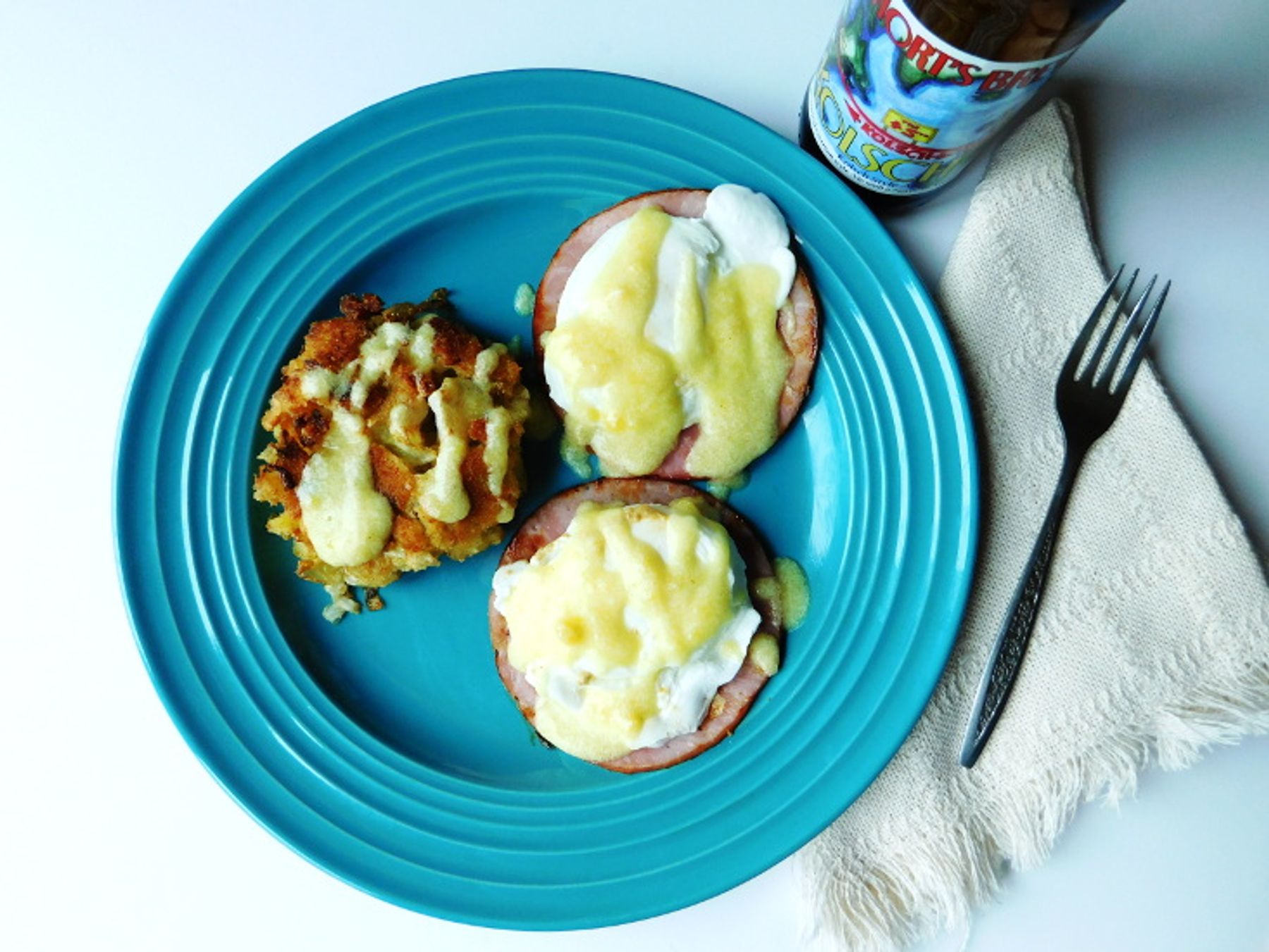 Crispy potato and cabbage patties served alongside poached eggs and ham. The final touch, Hollandaise Sauce. The perfect breakfast or \\\'brinner\\\'.