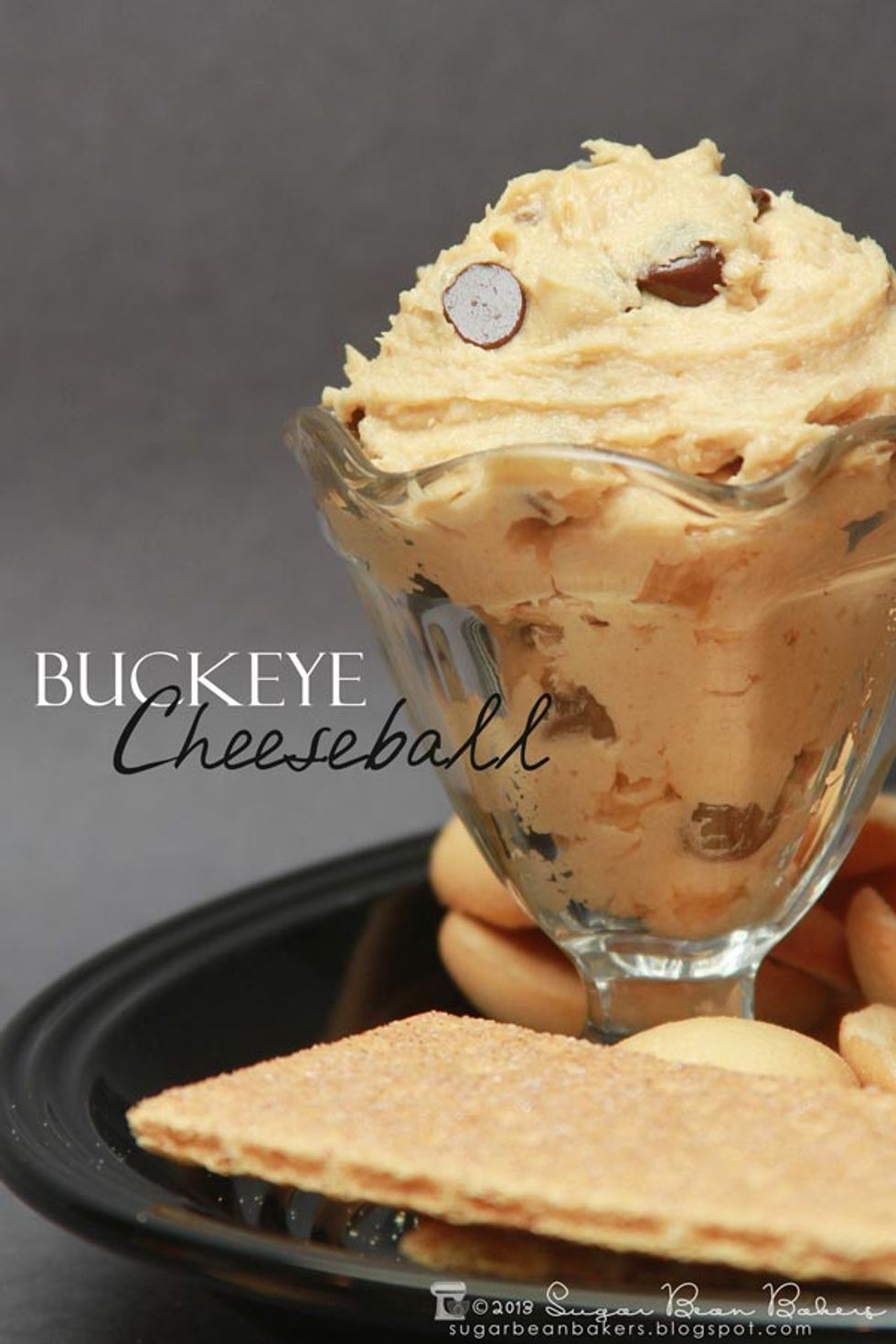A peanut butter & chocolate chip cheese ball. Serve with graham crackers, vanilla wafers, or other cookies.