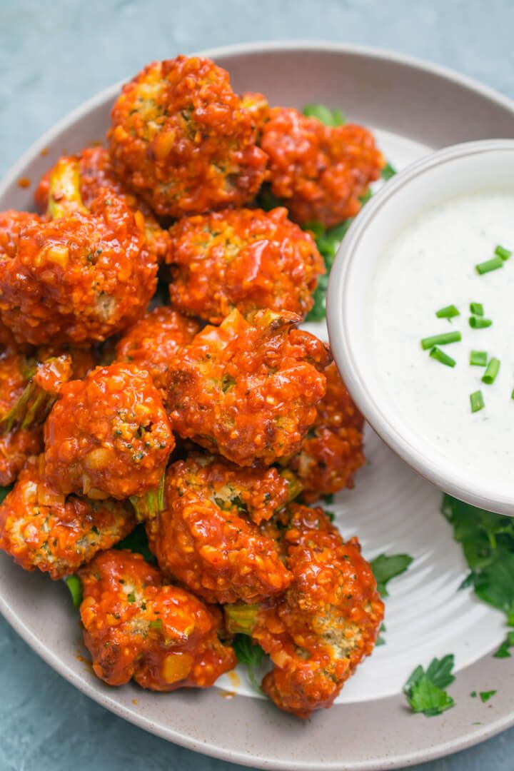 Preheat the oven to 425 degrees Fahrenheit and lightly grease a baking sheet. In a bowl, whisk together the non-dairy milk, hot sauce, white rice flour, cornstarch, and salt, and mix until smooth. Add...