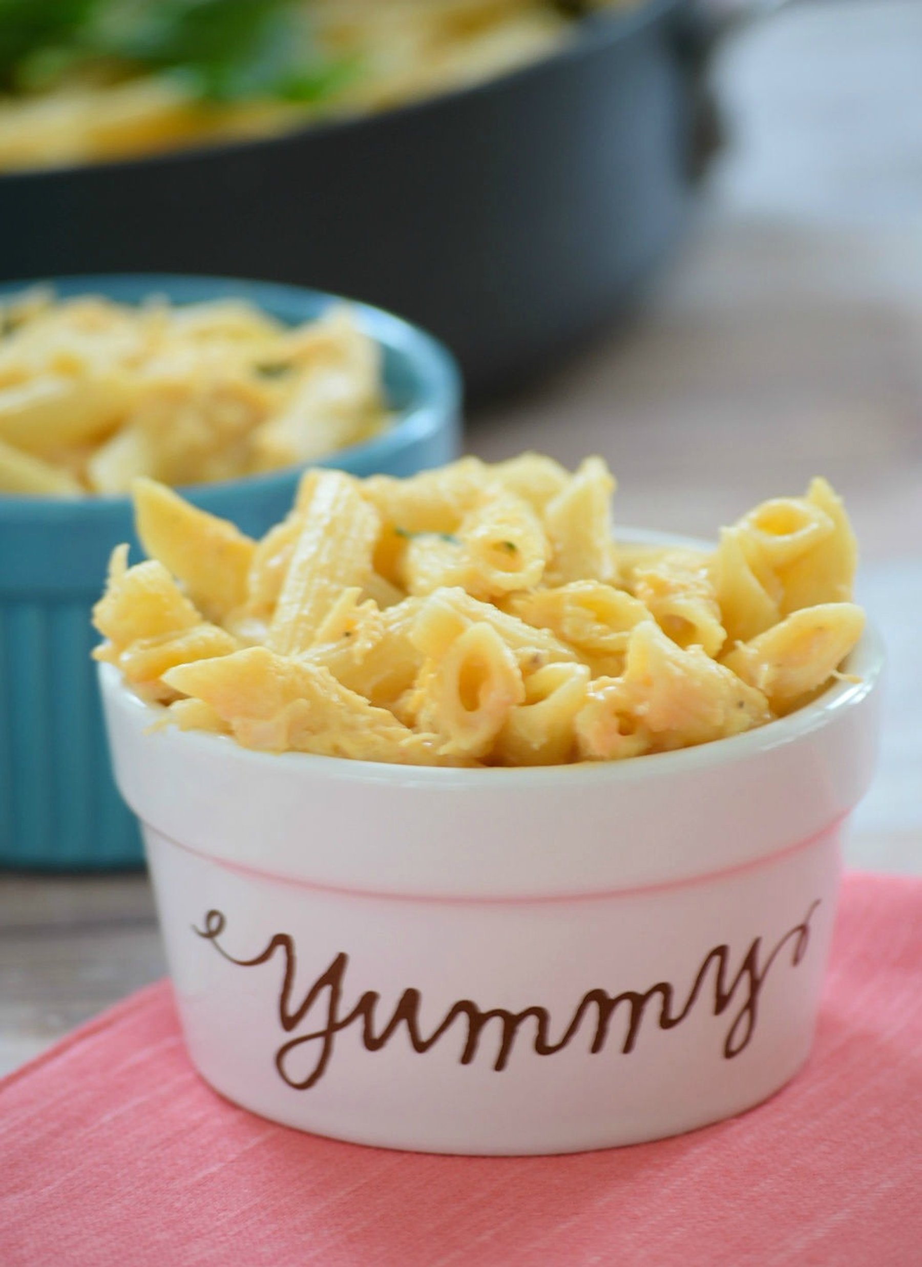 This Buffalo Chicken Macaroni and Cheese comes together in under 20 minutes and is the perfect meal to make when you have little time to spare! It tastes great made ahead and warmed up or eaten cold!