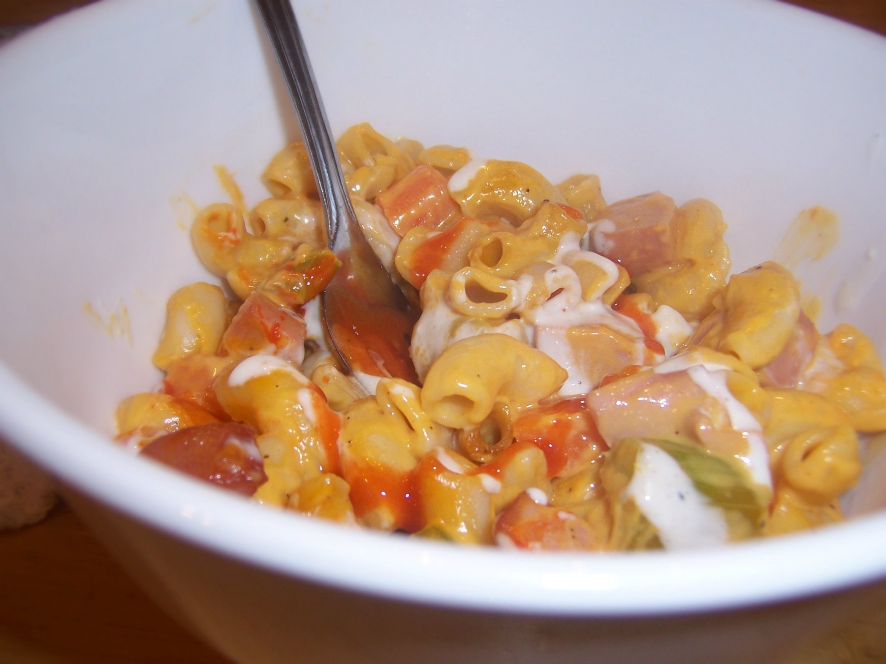 My husband's always been a huge fan of homemade mac 'n cheese. Me, not so much. I find it to be heavy, greasy and too salty. One day, my husband brought home a jar of Ragu's Double Cheddar Cheese Sauce. Scratching my head, I tried to figure out what to do with it. I saw veggies in my fridge, the cheese sauce, and some Frank's Red Hot Buffalo Sauce. And my buffalo mac 'n cheese was born.