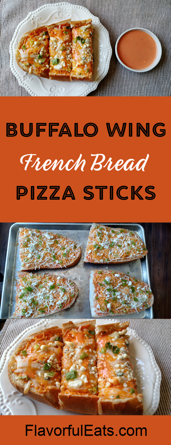 Who doesn't love the combination of buffalo wing sauce, blue cheese, and melted cheese on top of crunchy French bread! These Buffalo Wing French Bread Pizza Sticks are great for after school snacks or serve them for dinner with a green salad.