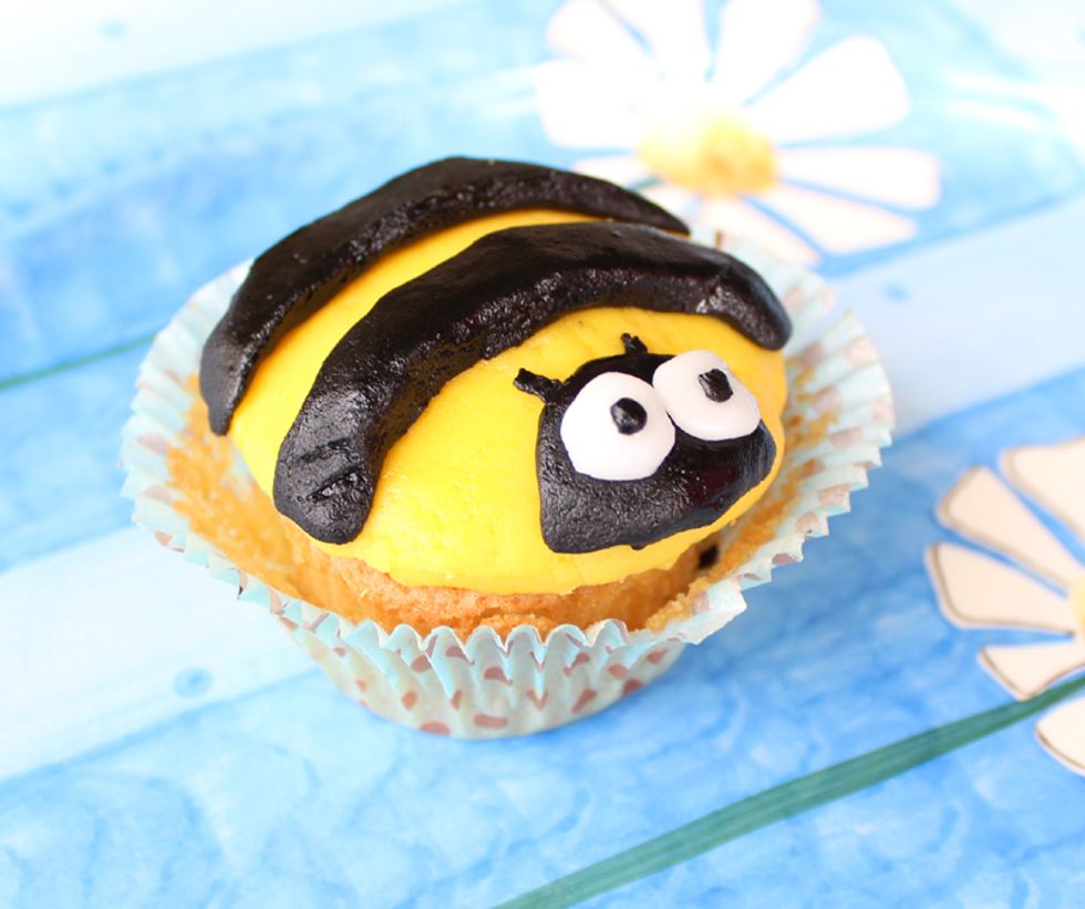 This is a super easy and very popular recipe with the kids. I call it Bumblee (Bumblebee) Cupcakes with Colored icing. Because they look so cute and are easy to make the kids love giving a helping hand. Try this one out.
