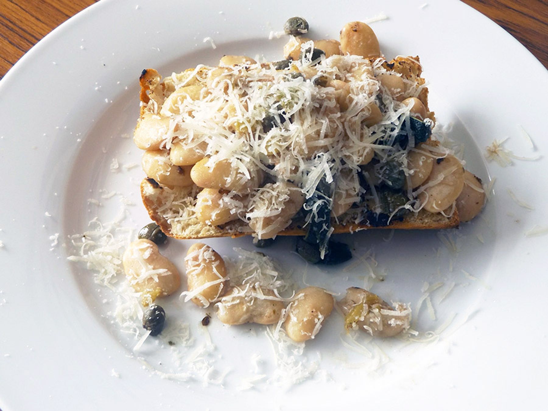 Italian inspired beans on toast, with capers and parmesan!