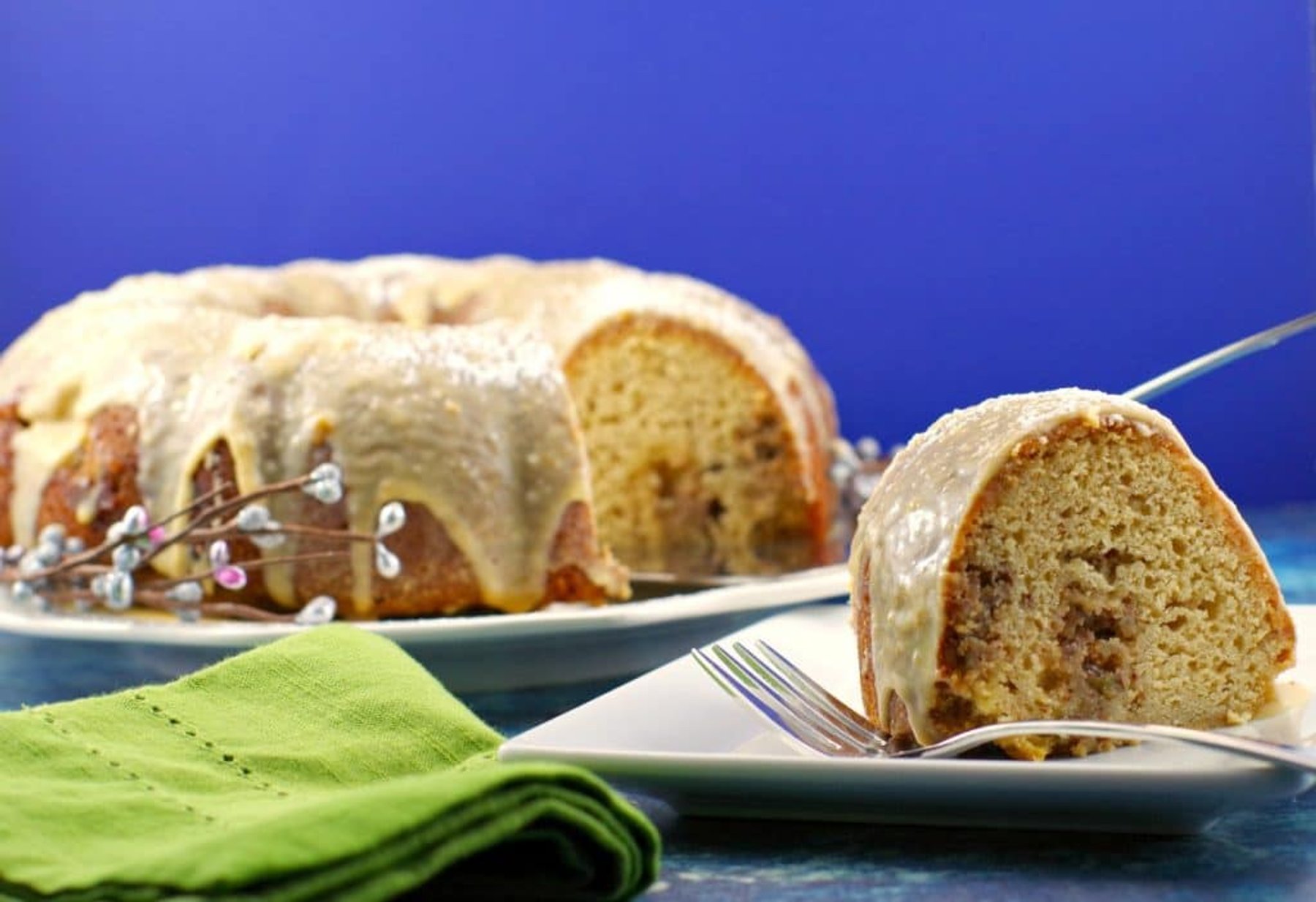 Butter Tart filling is swirled into this delicious butter tart cake, then it's smothered in a creamy brown butter maple glaze. A delicious butter tart in the form of a cake! The perfect dessert for your Christmas dinner!