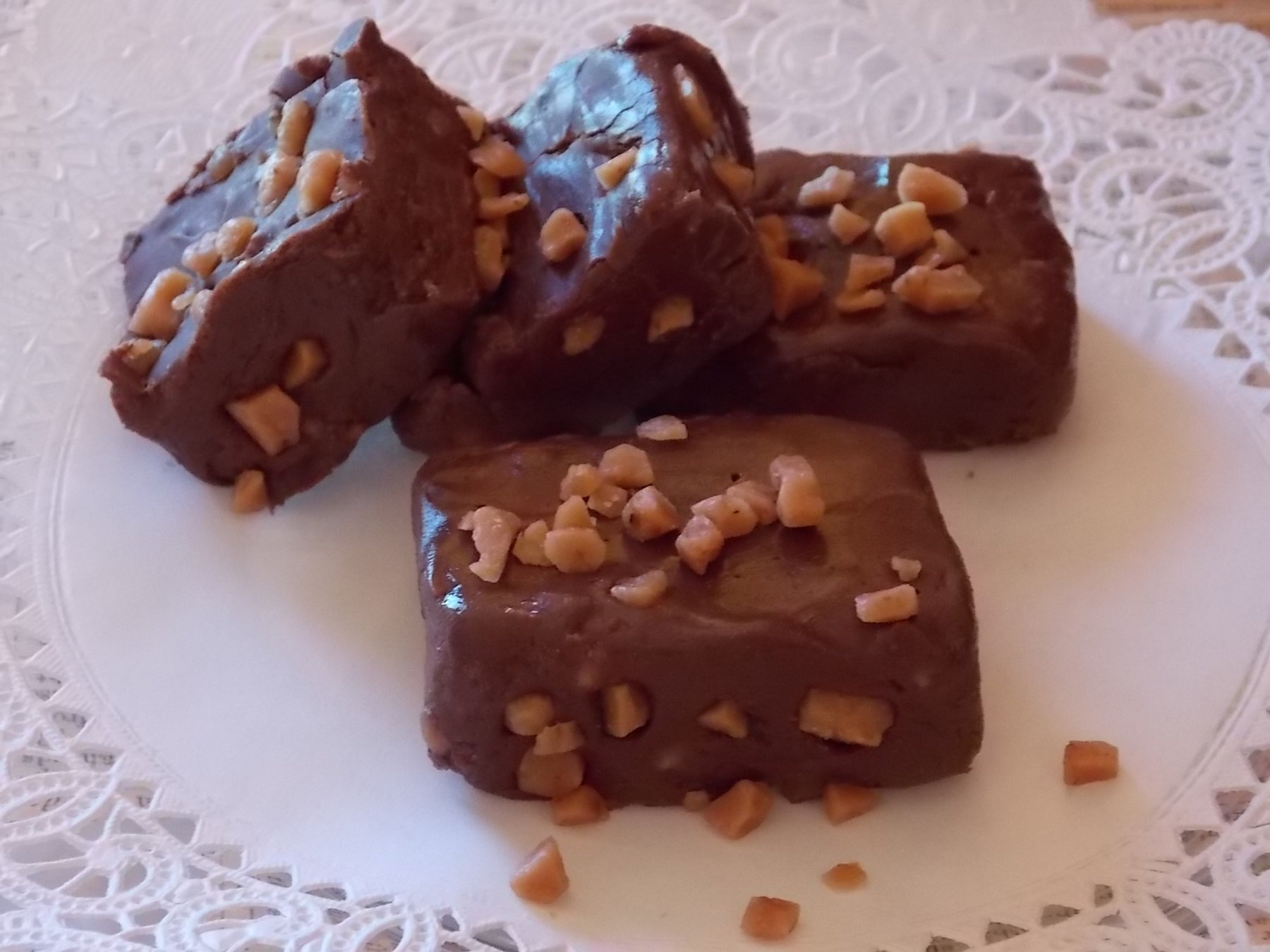 Combine Chocolate Chips, Condensed Milk and Butter in Microwave safe bowl. Heat on medium setting, stirring occasionally, until melted. Stir in Toffee Bits. Pour into greased or wax paper lined 8x8 inch...