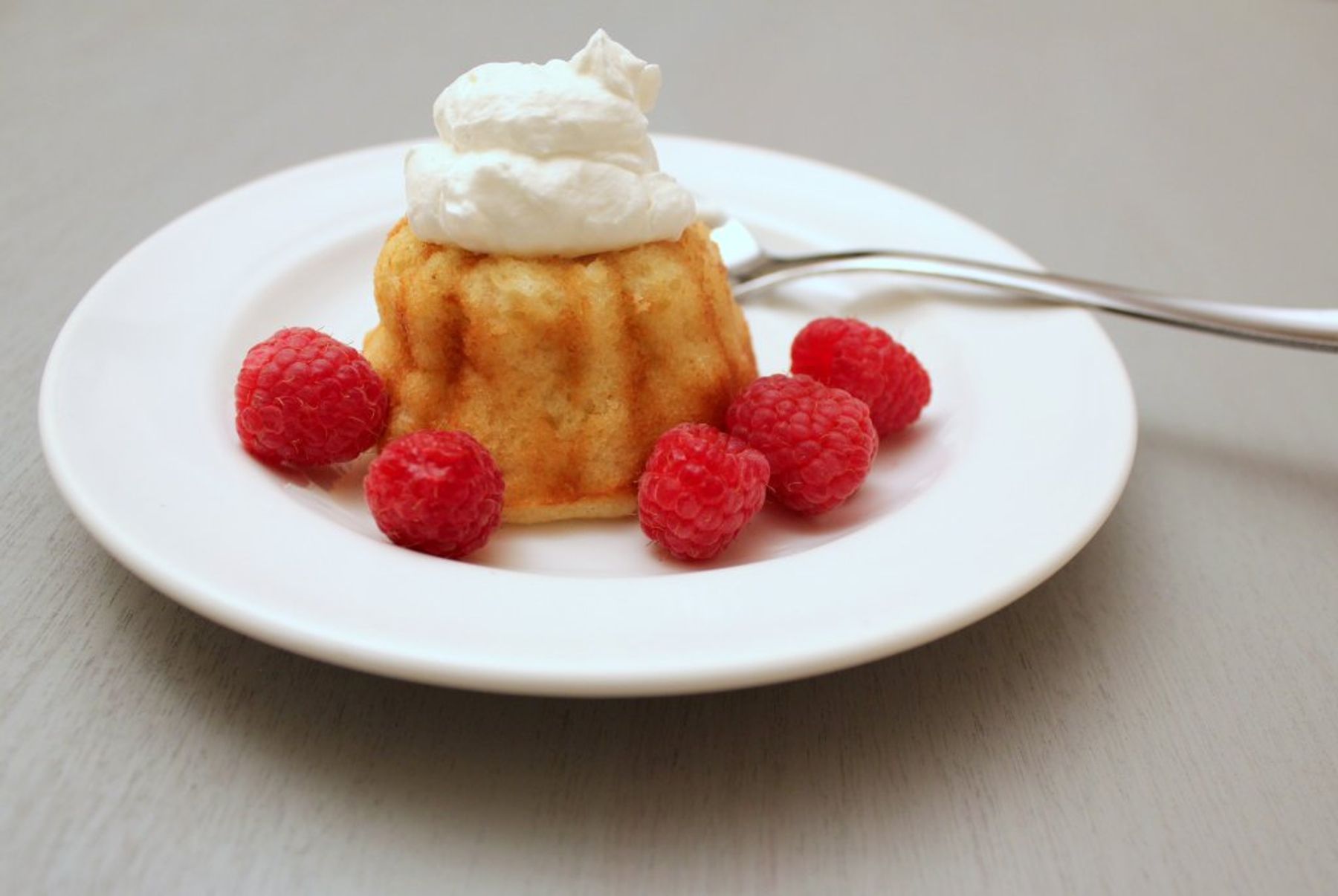 Moist buttermilk cakes with a hint of almond flavor. These cakes are best served warm with sweetened whipped cream and berries.