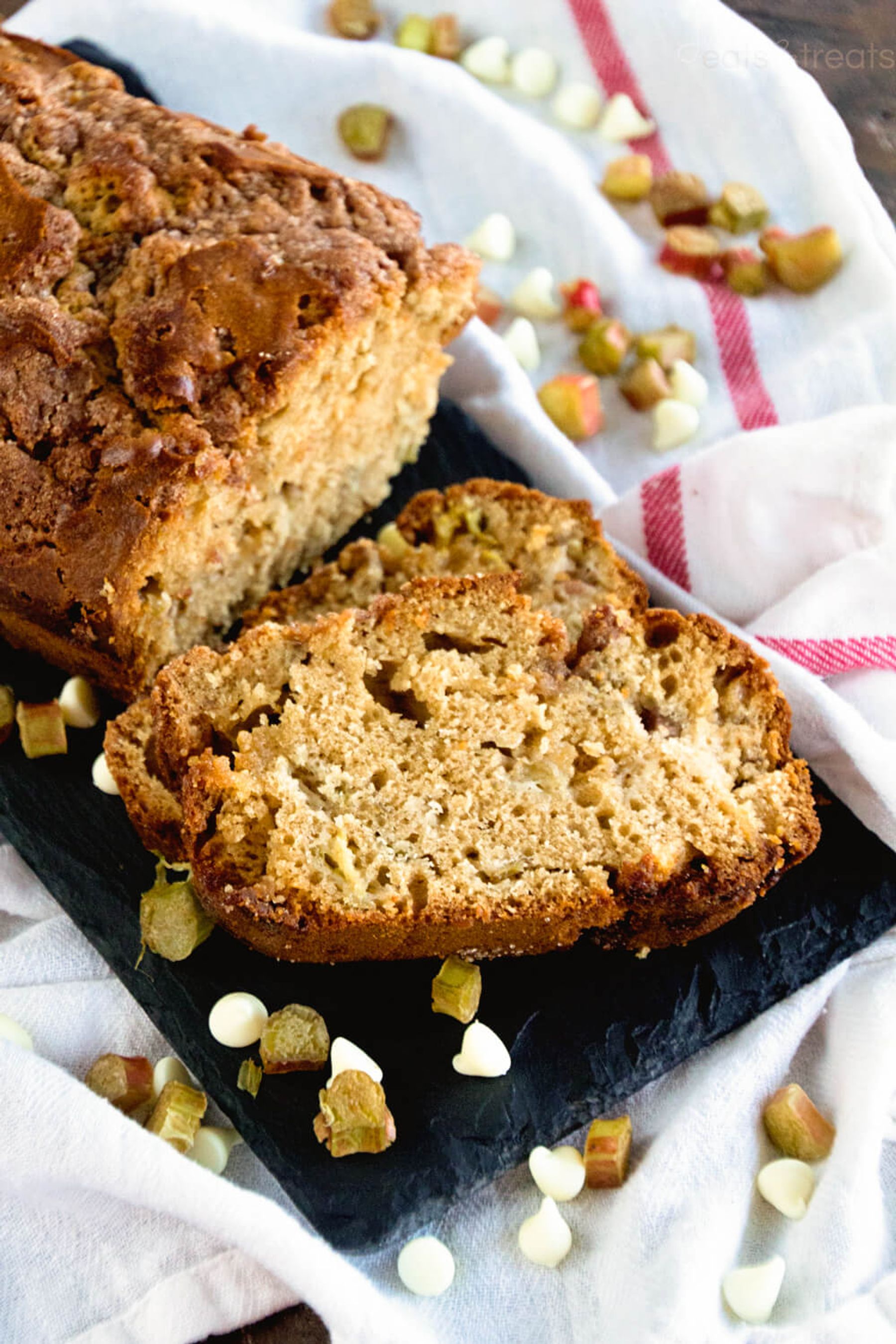 Buttermilk Rhubarb Bread ~ Quick, Easy Bread Recipe Loaded with Rhubarb and White Chocolate Chips!