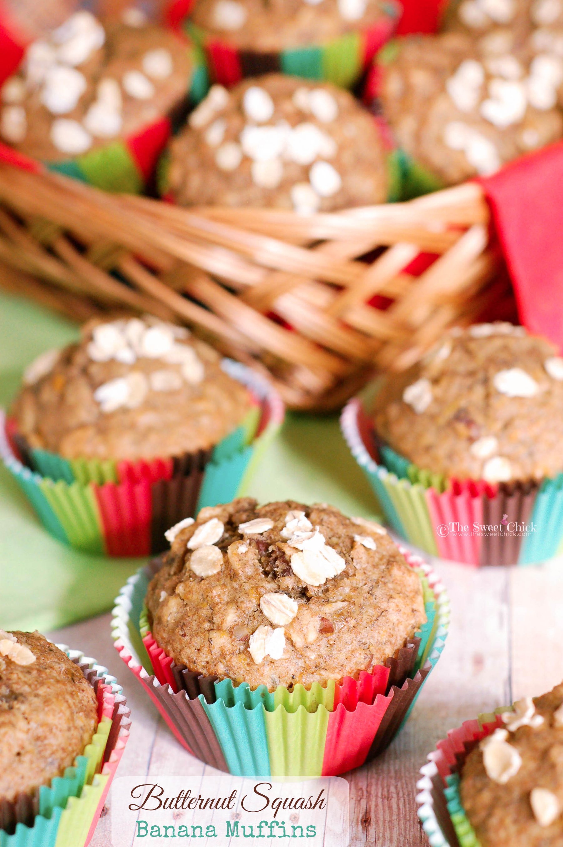 Healthy muffins made with butternut squash puree, bananas, and pure maple syrup.