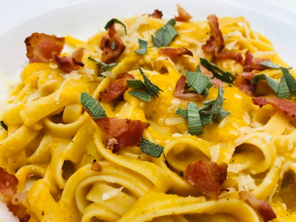 There's still a lot of butternut squash left from this year's harvest. Let's make a butternut squash carbonara! A rich and creamy meal, without using any eggs.
