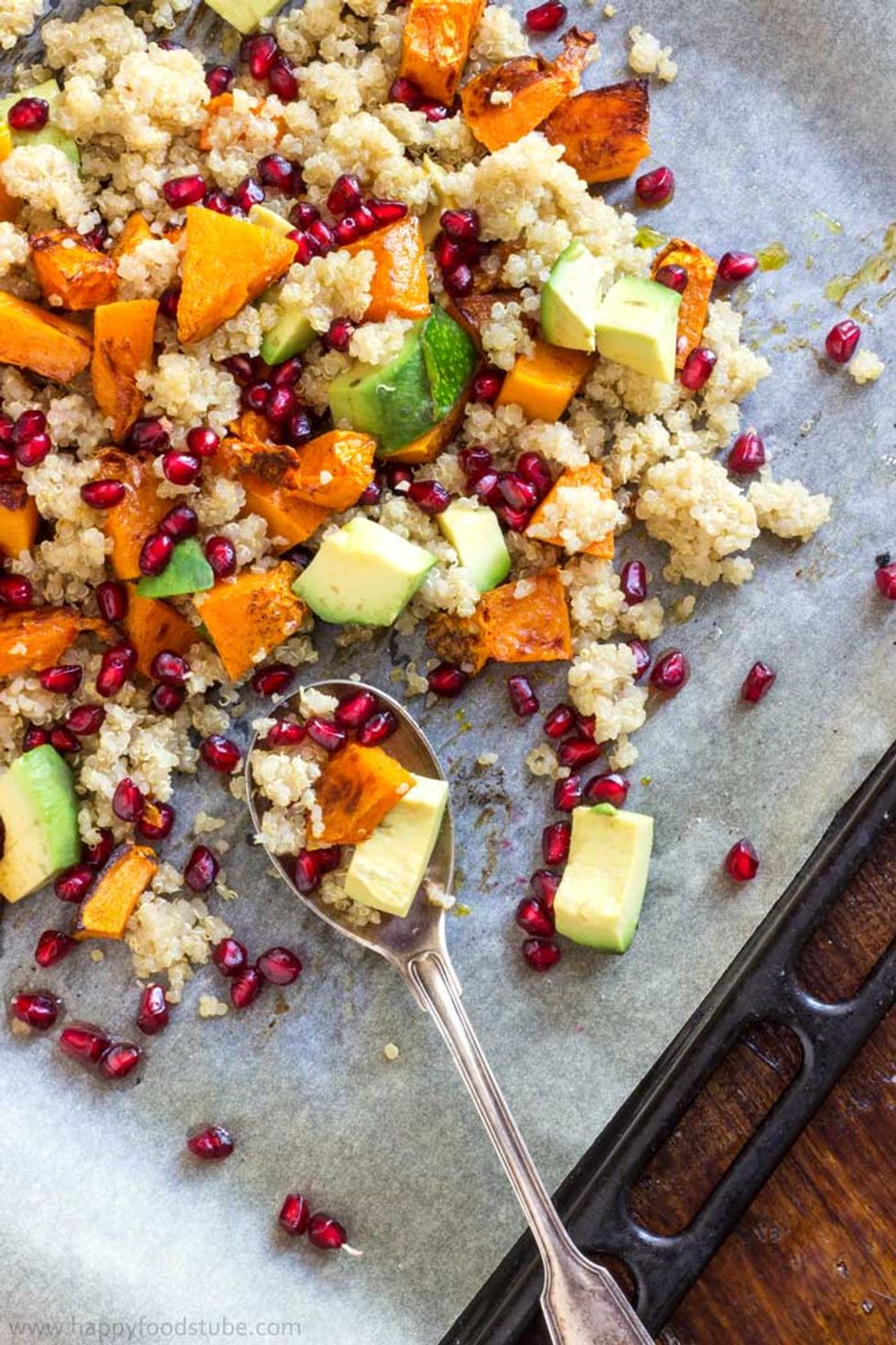 This roasted butternut squash salad with quinoa & pomegranate is packed with vitamins, minerals & antioxidants! It is a perfect fall salad!
