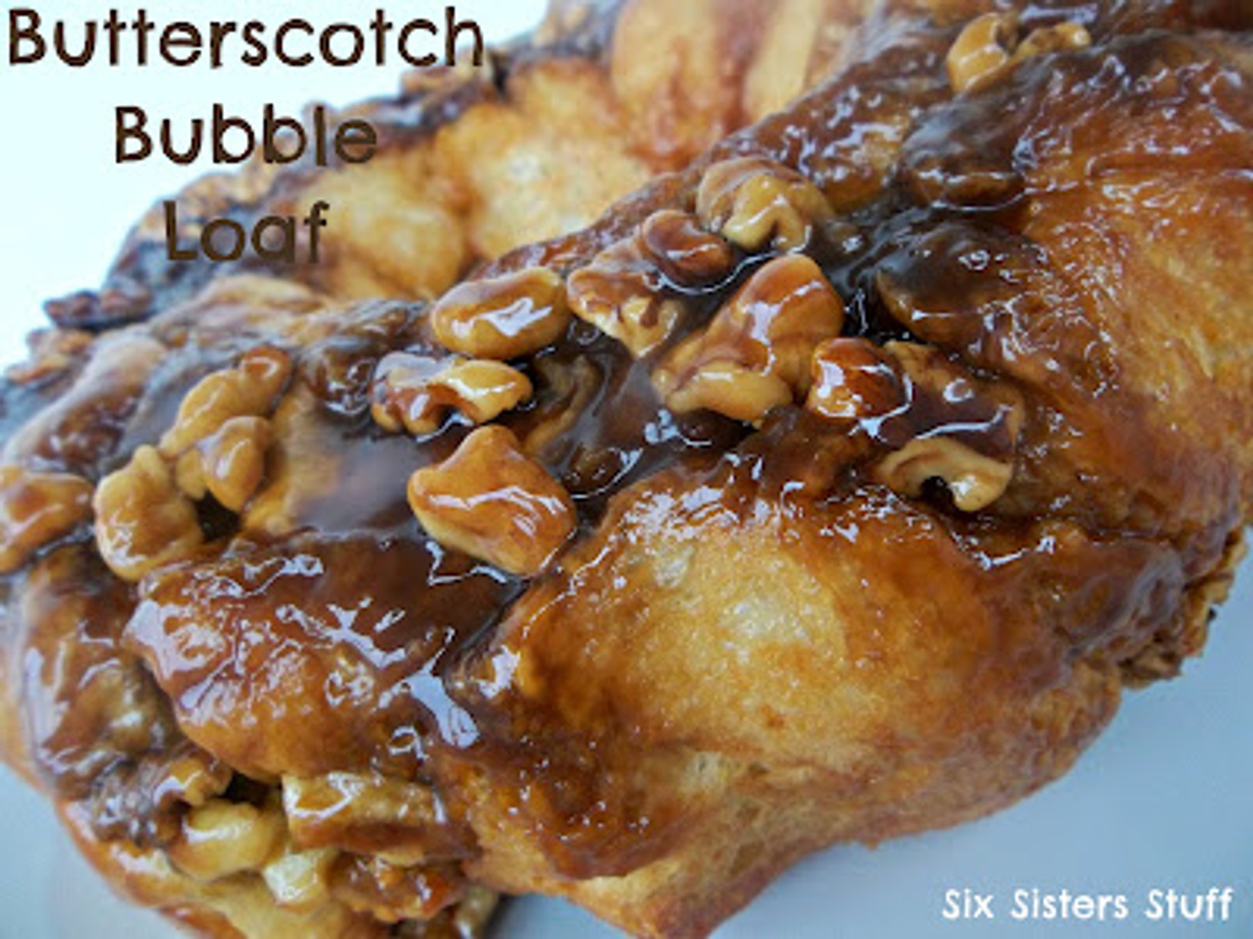 I am loving any baked treats right now...but there is a good reason for that: I'm pregnant! I am about 13 weeks along, Camille is 20 weeks and Elyse is about 33 weeks. We did not plan to have them so close but I must say that I am EXCITED! My mom would make this Butterscotch Bubble Loaf all the time for breakfast and even dinner with our omelets. It is easy, gooey, delicious and definitely comforts my cravings!