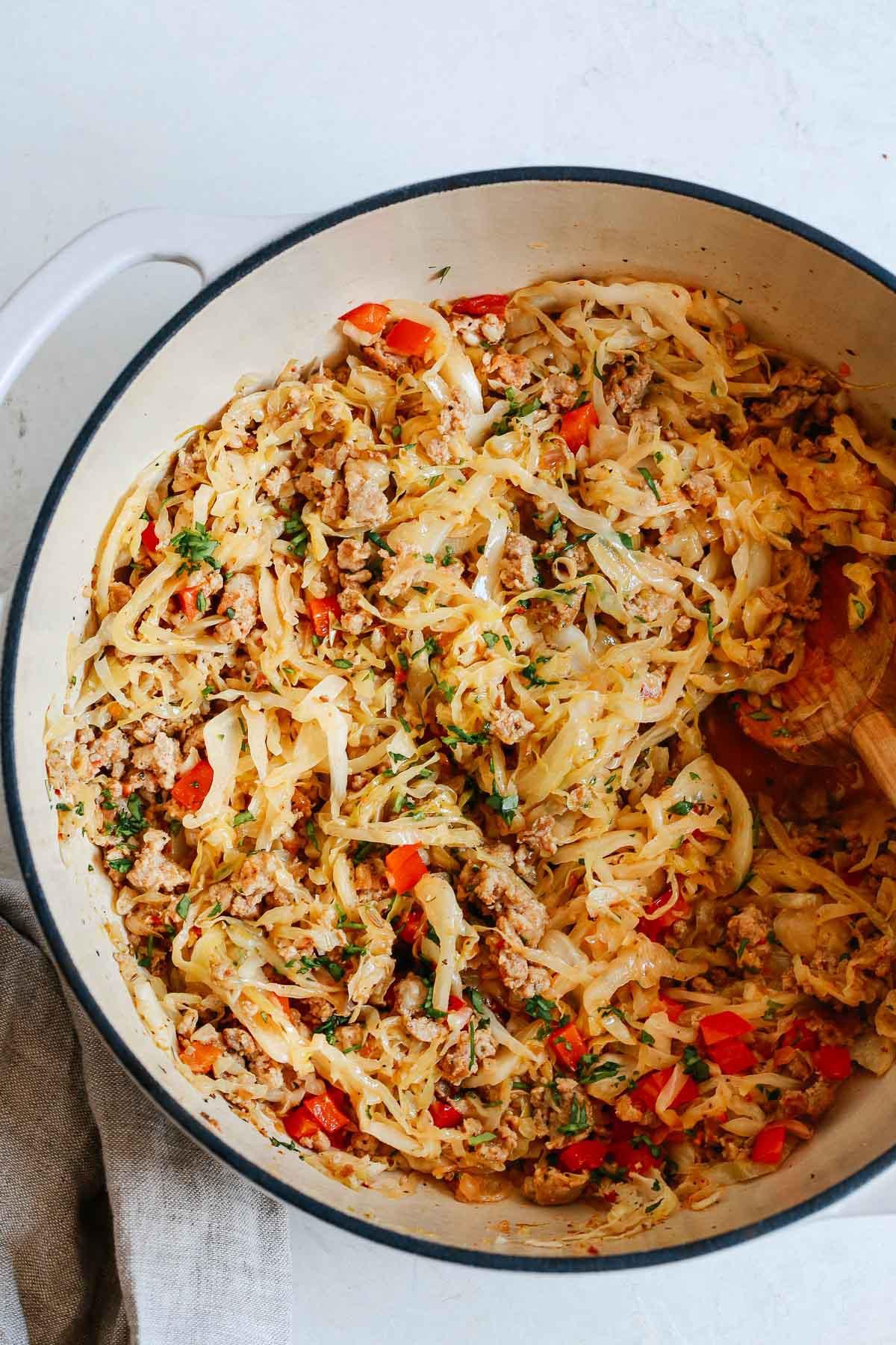 Cabbage and sausage Olivia RibasJanuary 13, 2021 13 https://www.primaverakitchen.com/cabbage-and-sausage-skillet-recipe/Try itSee the full directions on my site