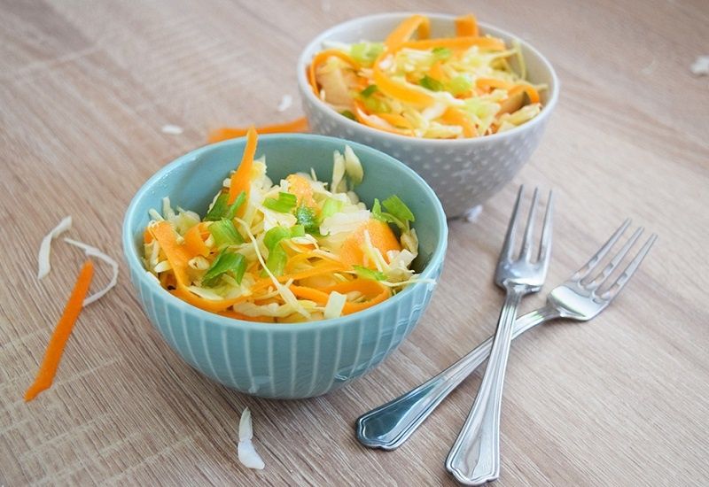 - Prepare all the ingredients. Chop the spring onion. Thinly slice the cabbage into strips. If you have a mandoline slicer use it to cut the carrot. If not, you can use a peeler, as we did, to quickly...