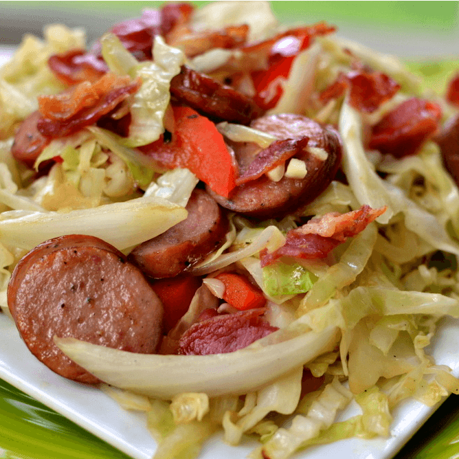 Cabbage Stir Fry with Bacon and Sausage
