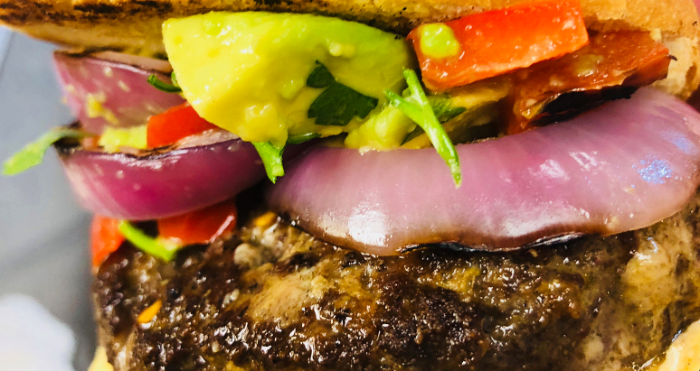 This Wagyu Cajun Sausage Burger with Avocado & Roasted Pepper Relish recipe is a quick and easy to make dish! The Fullblood Wagyu cajun sausage is formed into a patty and grilled to perfection. Serve on a bun with avocado, roasted pepper relish, and onions!