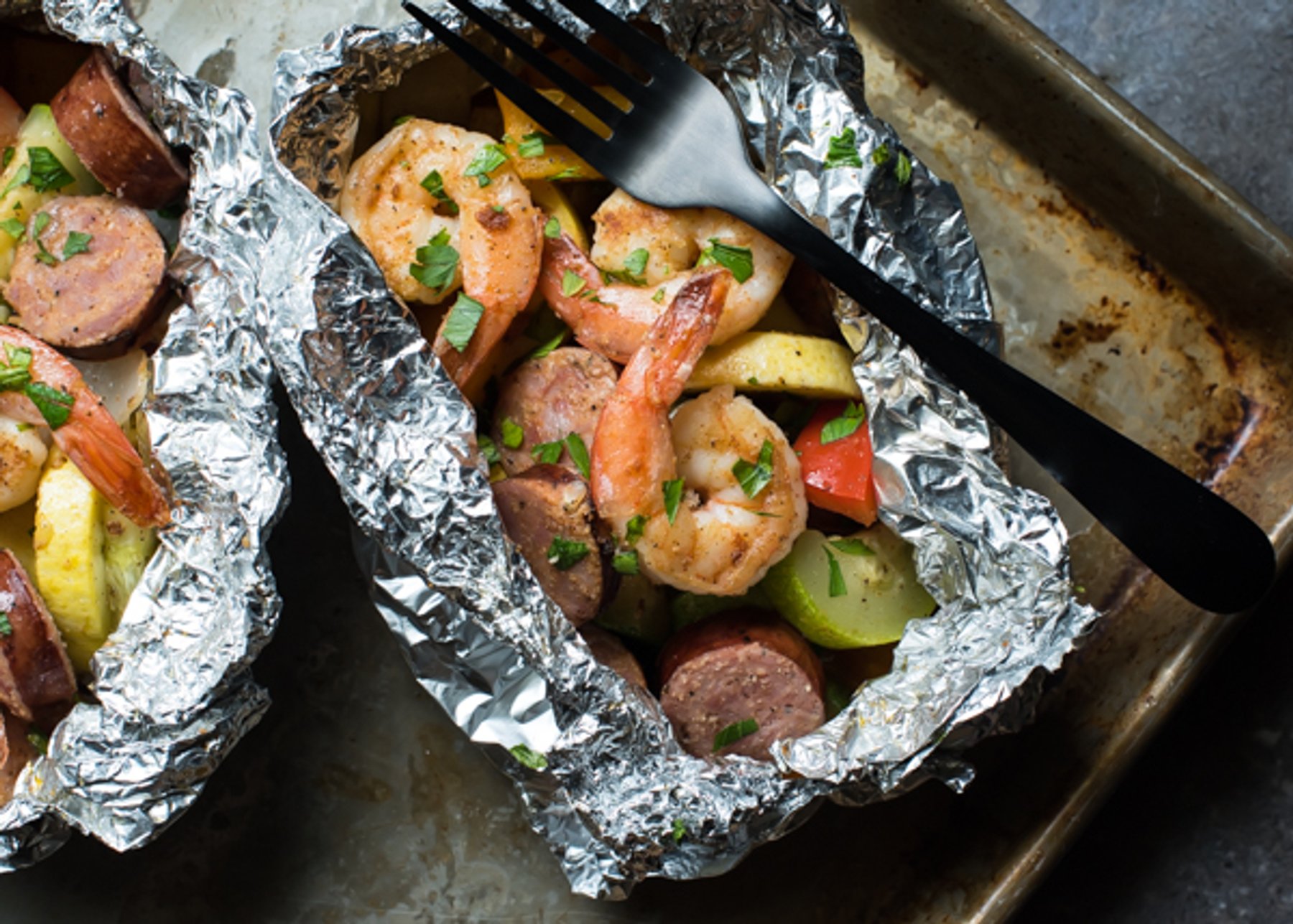 Cajun Shrimp, Sausage & Veggie Foil Pack Meals