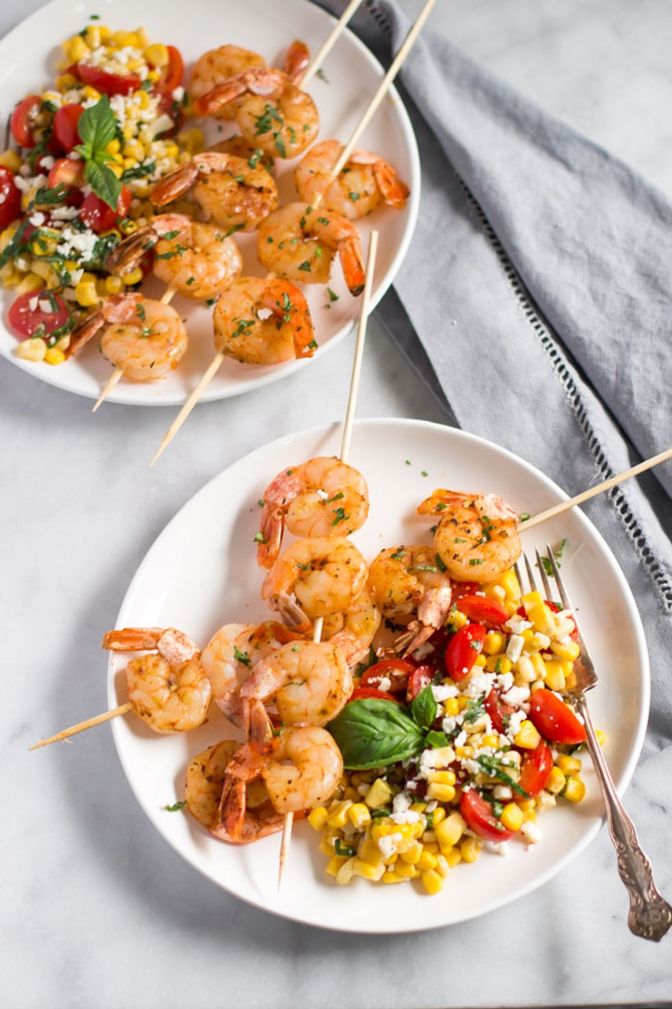 Cajun Shrimp Skewers with Corn Salad