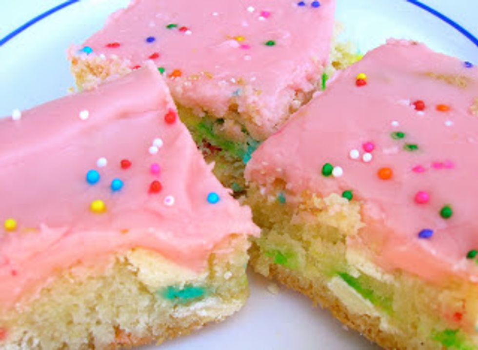 I found these yummy bars-o-goodness over at girlmeetslife . . . and wow. My husband LOVES anything that uses a "Funfetti" cake mix and I knew as soon as I saw these that they would quickly become his favorite . . . I was totally right. This is kind of a like a dense cake, which makes it easy to cut up and serve as bars. They are super easy to throw together and taste amazing.