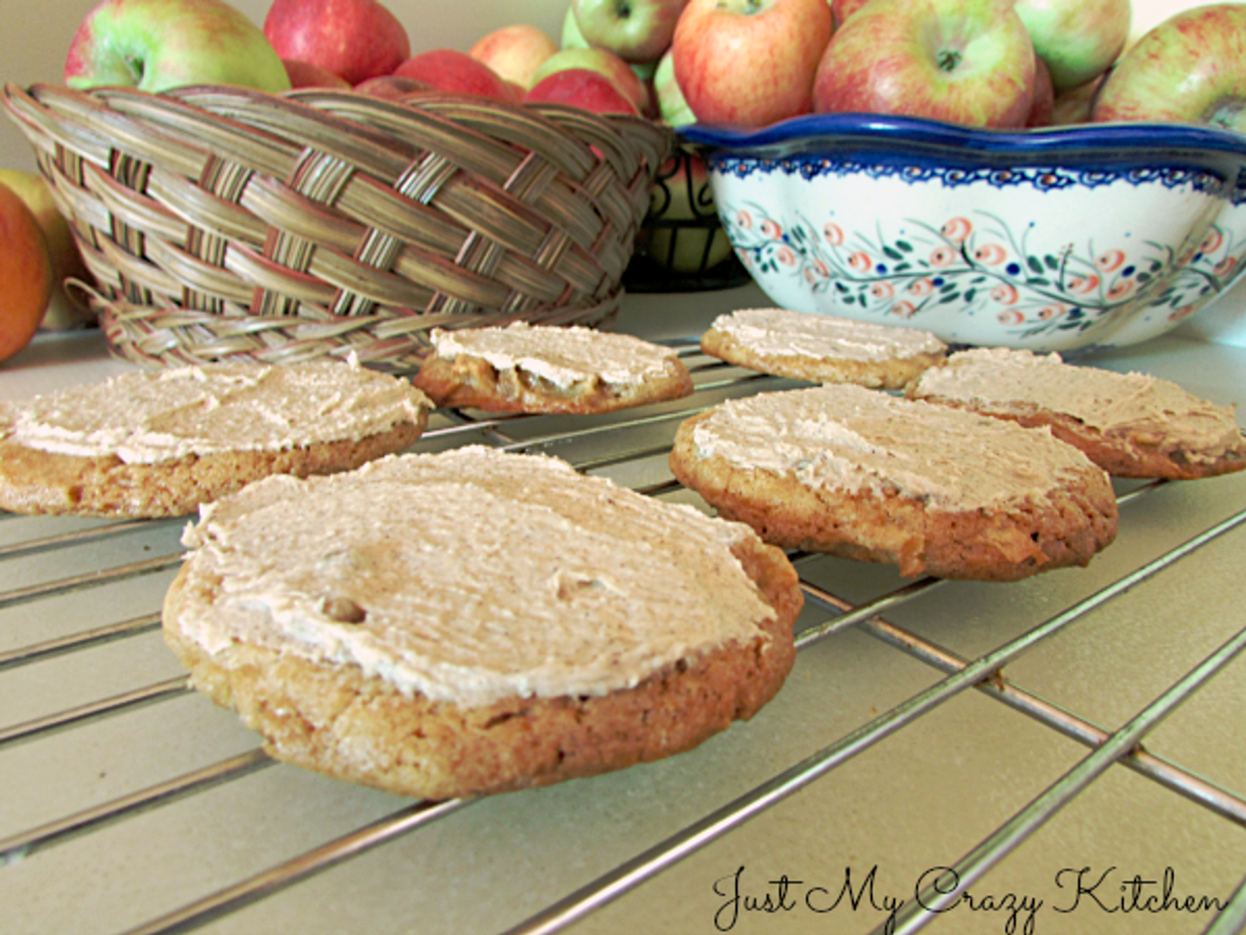 For the Cookies: In a small saucepan, combine apples, sugars, and butter. Bring mixture to a boil. Let simmer for 2-3 minutes or until apples are soft. Stir in vanilla and let cool. In a medium bowl,...