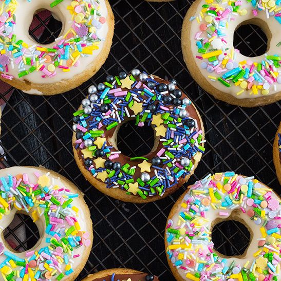 These baked doughnuts require only cake mix and three other ingredients to make! They're light and fluffy and you can dip in any flavour glaze you like!