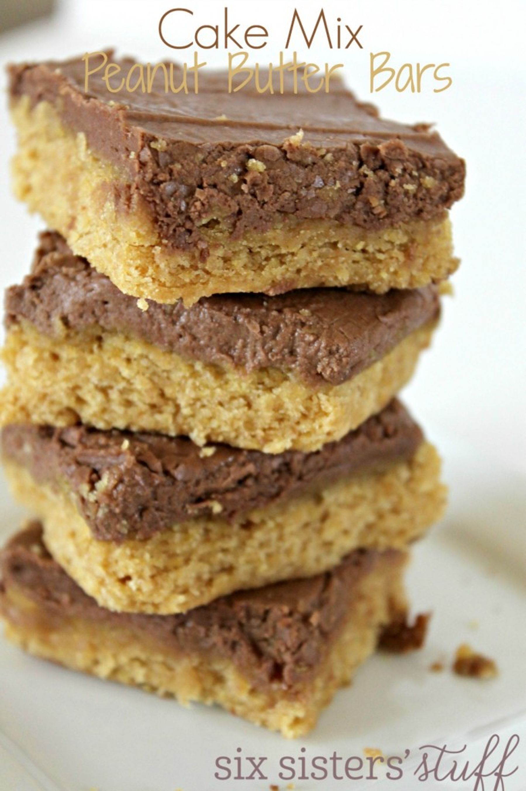 Cake mix and peanut butter bars are the perfect combination! And it is so easy to make! But beware….. once you start eating these there is no stopping! I almost ate half the pan by myself!