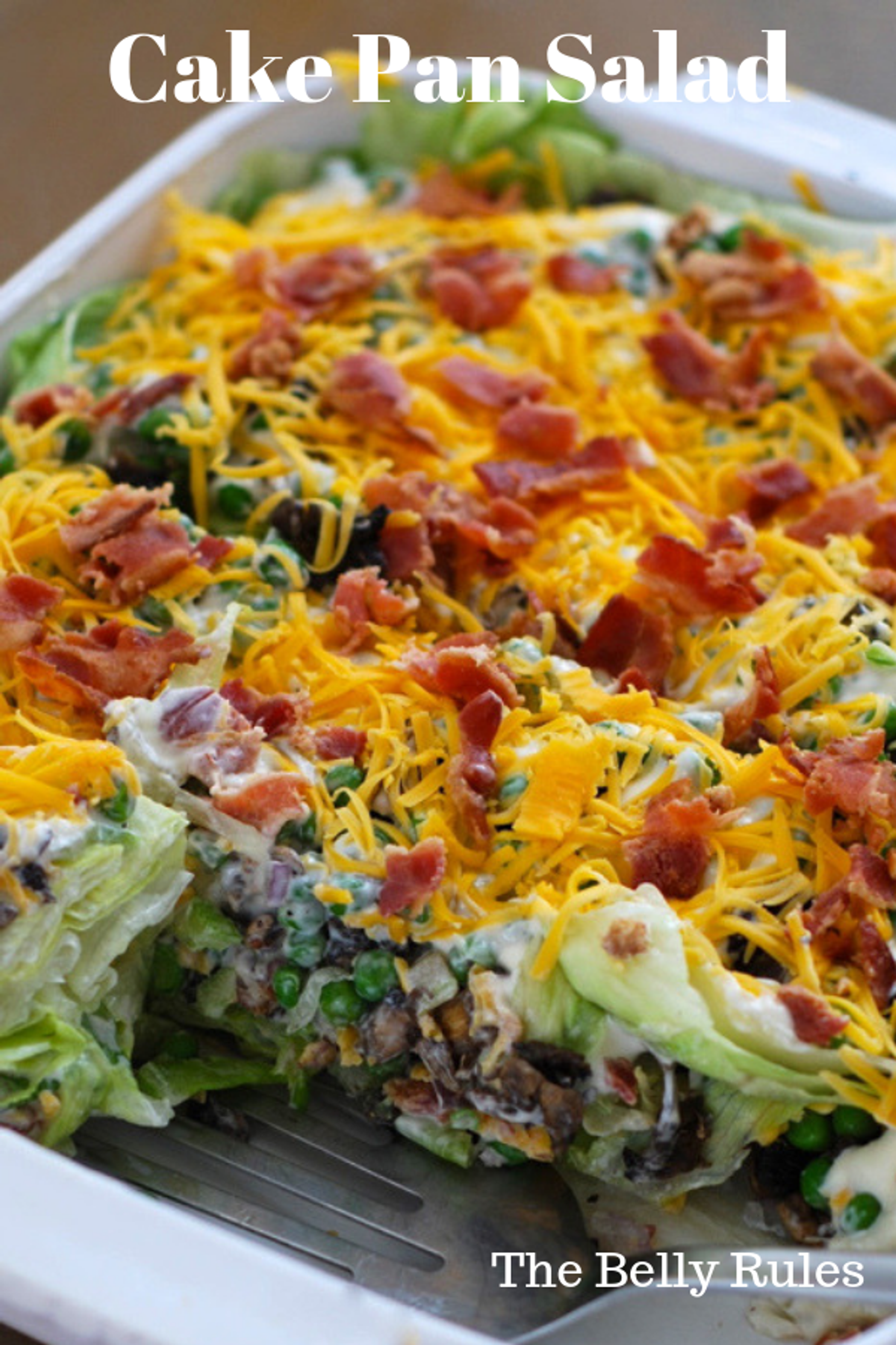 Remove core from head of lettuce. Cut head into quarters. Carefully seperate the lettuce layers. Put half of them in the bottom of a 9 x 13, glass cake pan. Top with half of the onion, half of the...