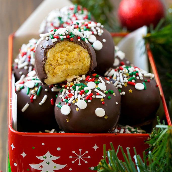 These cake truffles are made with cake crumbs, frosting and candy melts, then decorated with sprinkles. You can customize cake truffles to make them whatever flavor you like and decorate them for any holiday!