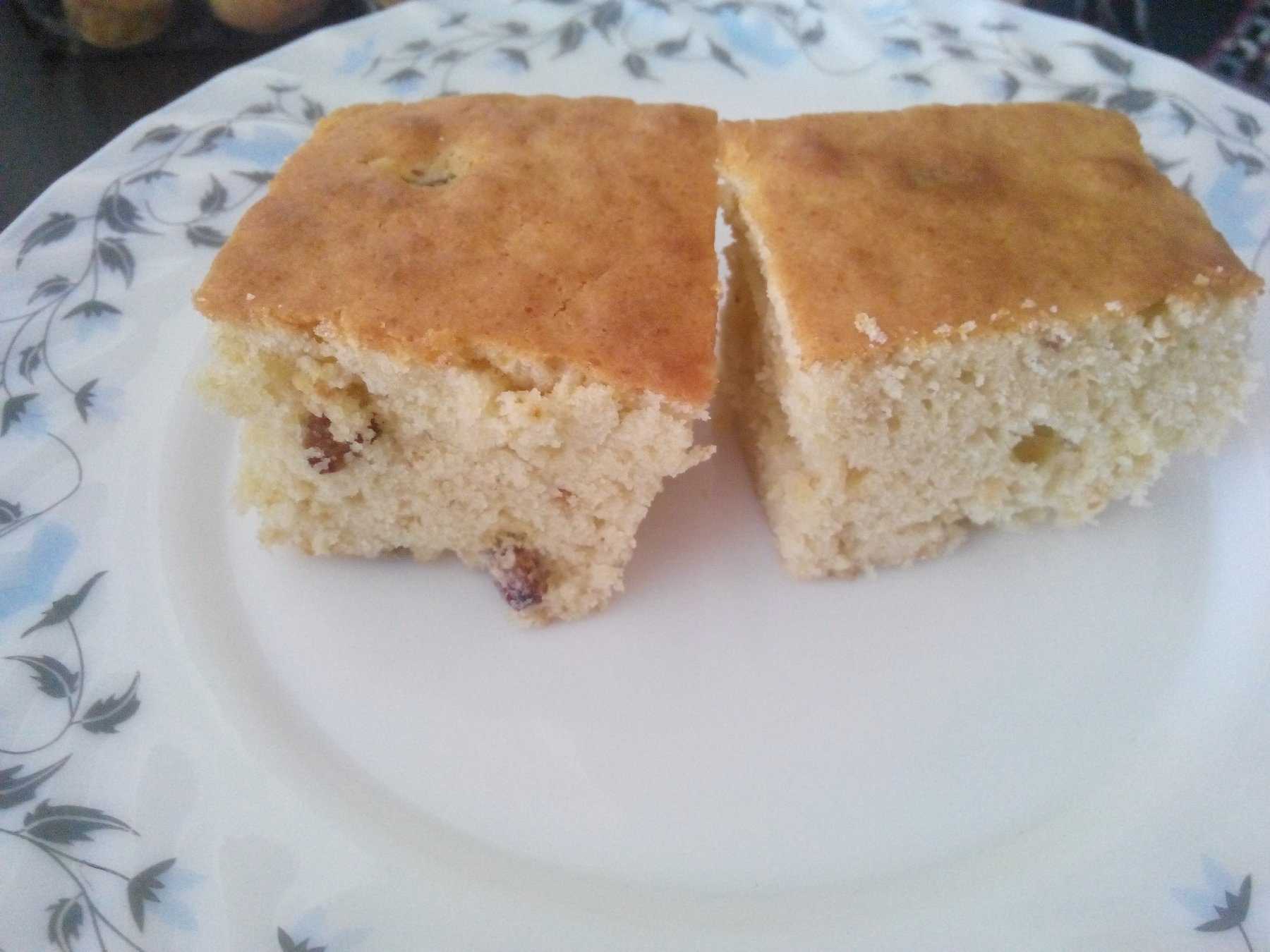 3 eggs, 1 cup sugar, 1 cup oil, 1 cup milk, 10 spoons flour, 3 teaspoon baking powder, 1 teaspoon vanilla extract, 1 spoon honey, 1 cup of rinse and 1 cup of nut (crumbled)