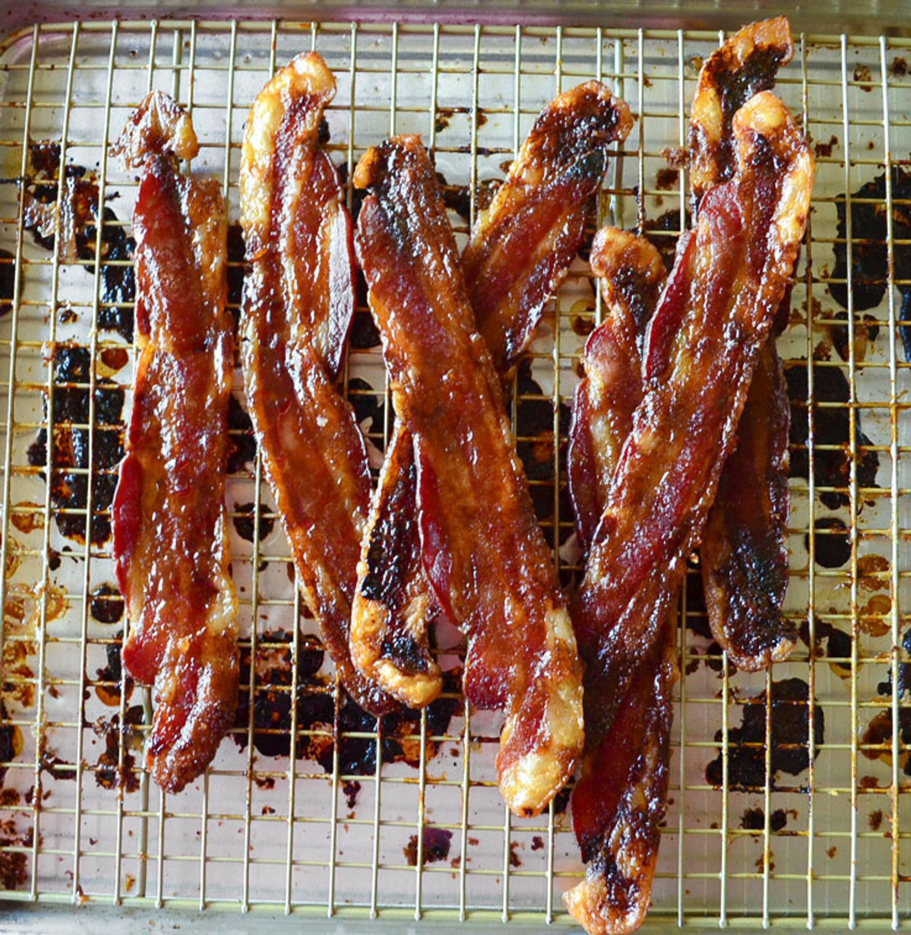 Lay the slices of bacon on the wire rack in a singe layer. Sprinkle the brown sugar down...