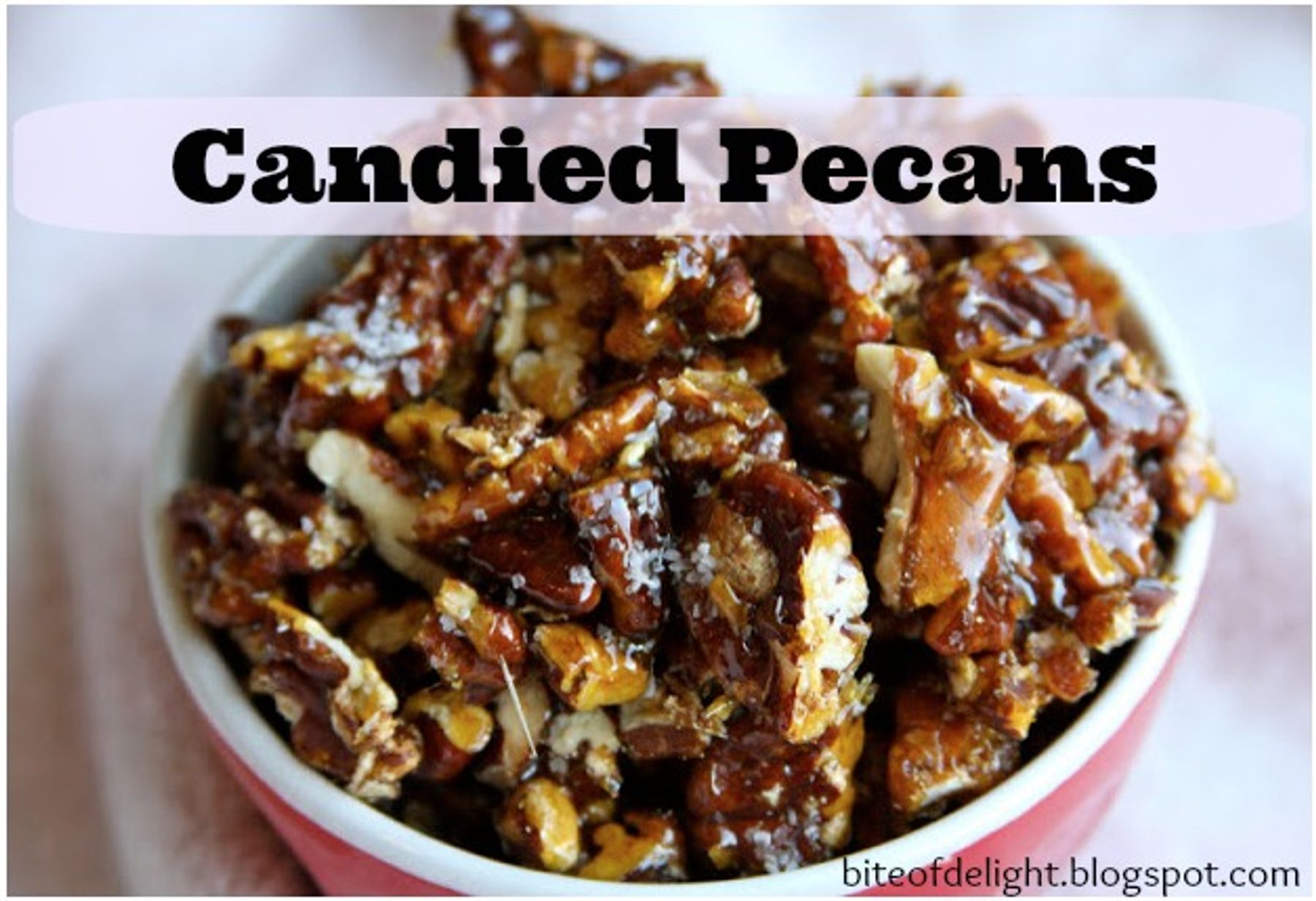 Place sugar in a saucepan over medium-low heat. Toast your pecans under a broiler for 2-3 minutes, watching them carefully so they don't burn. Turn the sugar up to medium heat. Once it is mostly an amber...