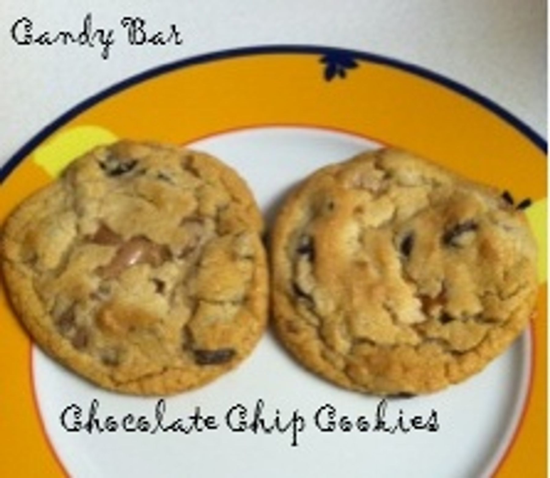 I had planned on making chocolate chip cookies, Then I saw a bunch of candy bars in my fridge and decided to add a Milky Way and a Snickers to the mix.