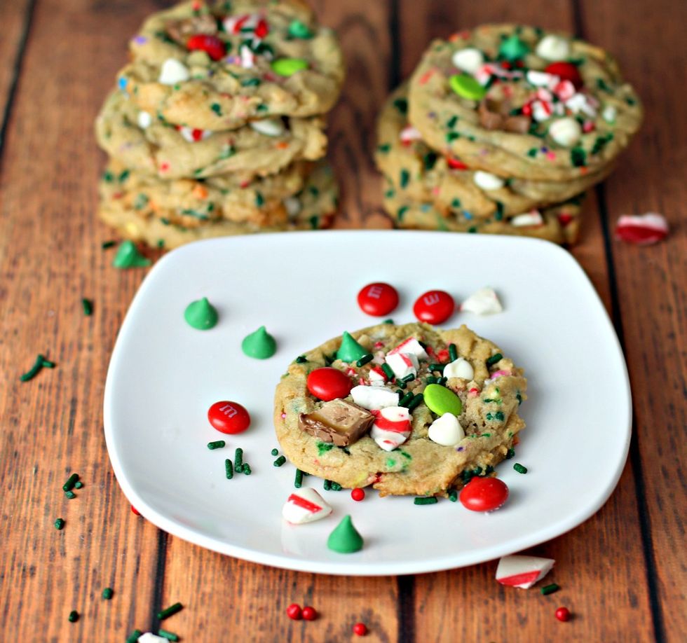 Candy Cane Lane Cookies are thick, plump, chewy, soft baked vanilla cookies loaded with candy sweets in every bite.