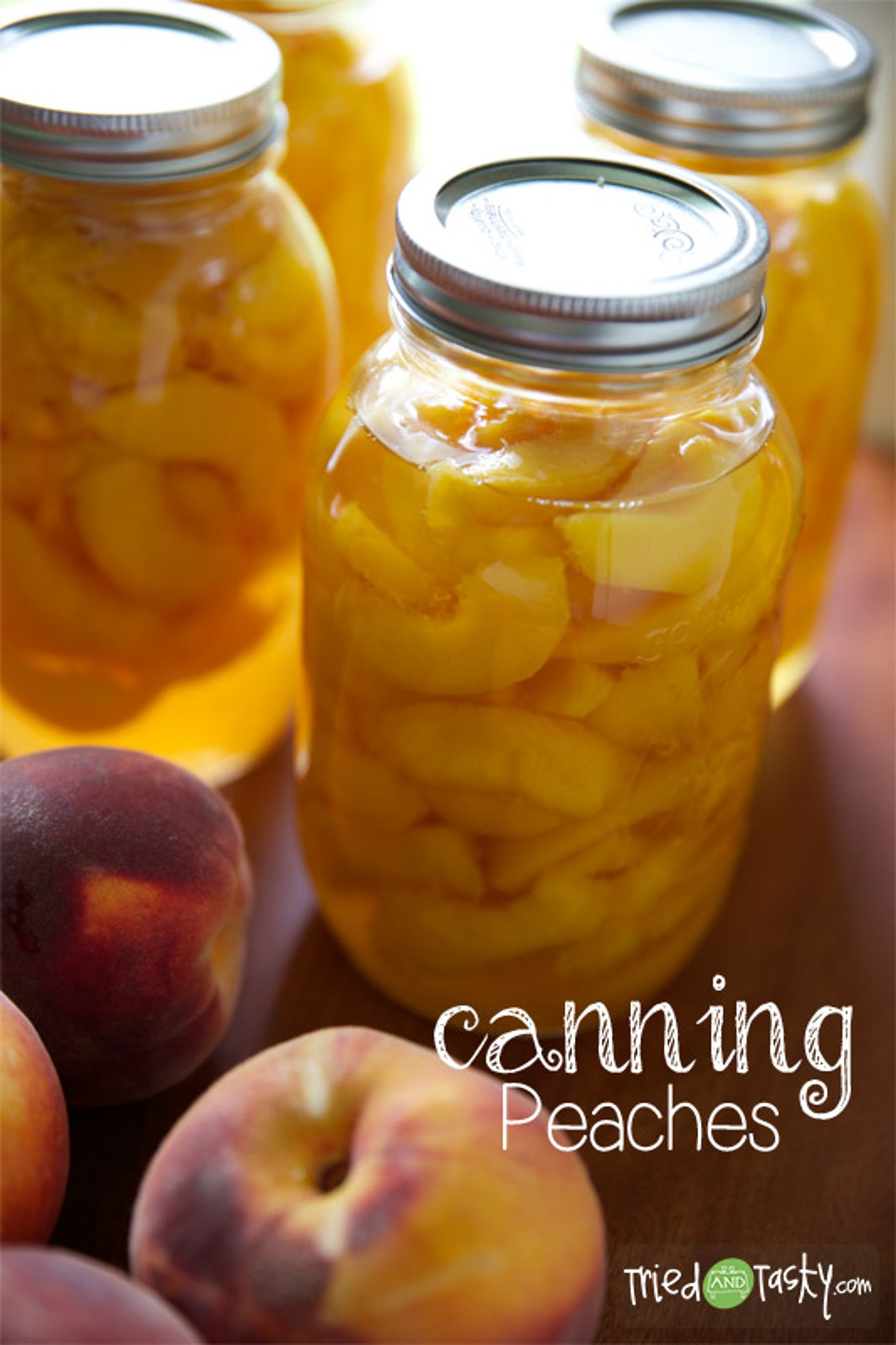 Boil sugar and water together five minutes. Keep hot. You’ll need 1 1/2 cups syrup for each quart of fruit. Wash and clean your peaches in warm water. Remove debris and discard overly ripe/excessively...