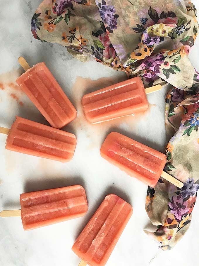 Cantaloupe Strawberry Popsicles! The "perfect consistency" ice popsicle. Every bite is the "right bite" filled with all-around sweetness with no added sugar that tastes like healthy cotton candy. 3 ingredients. It's a win, kiddie and mommy approved. Gluten-free, dairy-free, vegan, paleo, and nut-free.
