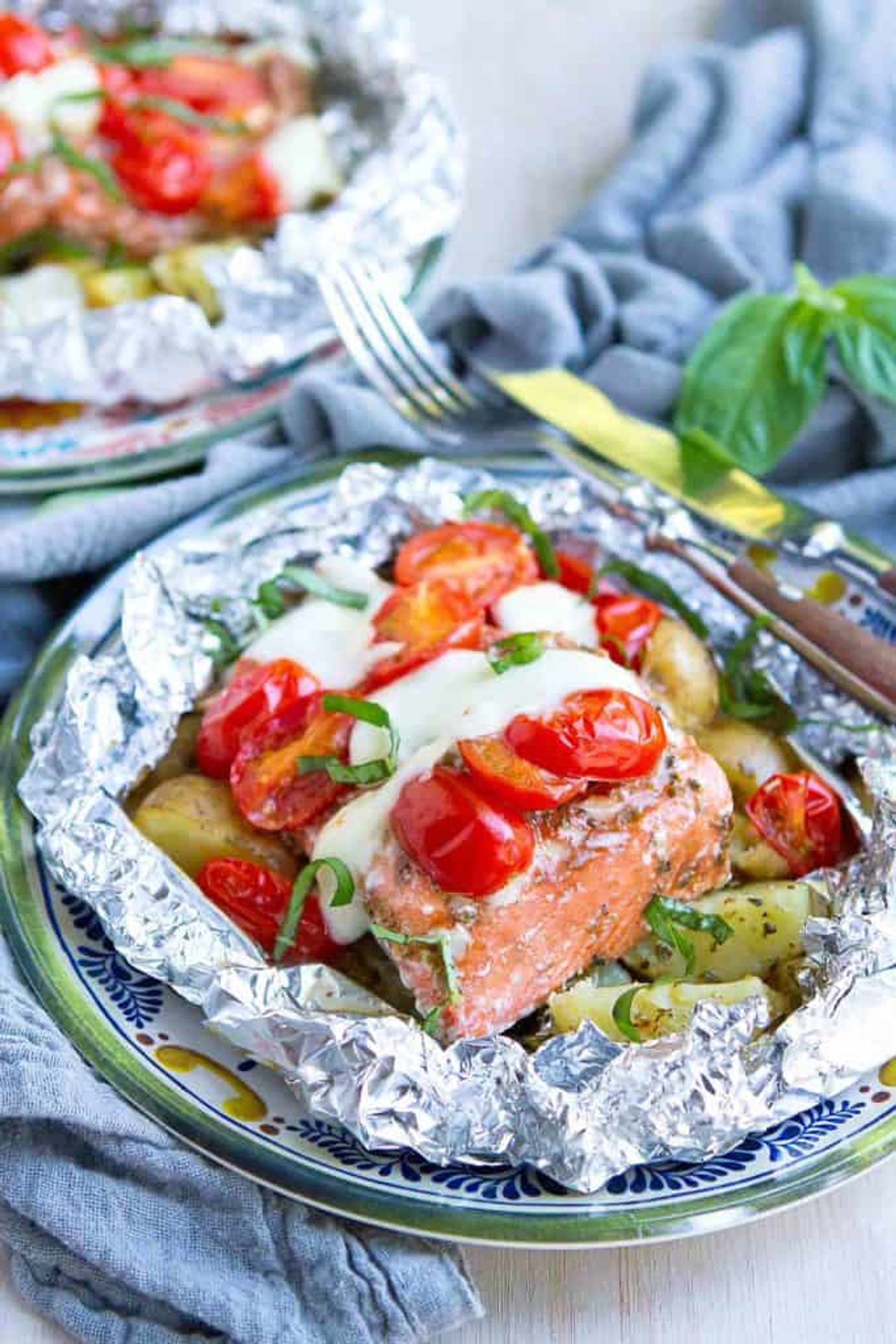 Fantastic for camping or mid-summer meals, these Caprese Potato Salmon Foil Packets are one of our favorite meals. So much flavor in every bite!