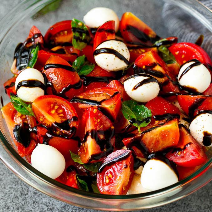 This traditional caprese salad is a blend of ripe tomatoes, fresh mozzarella, basil, olive oil and seasonings, all drizzled with balsamic glaze. A classic summer salad that is a must-have at any picnic or gathering!